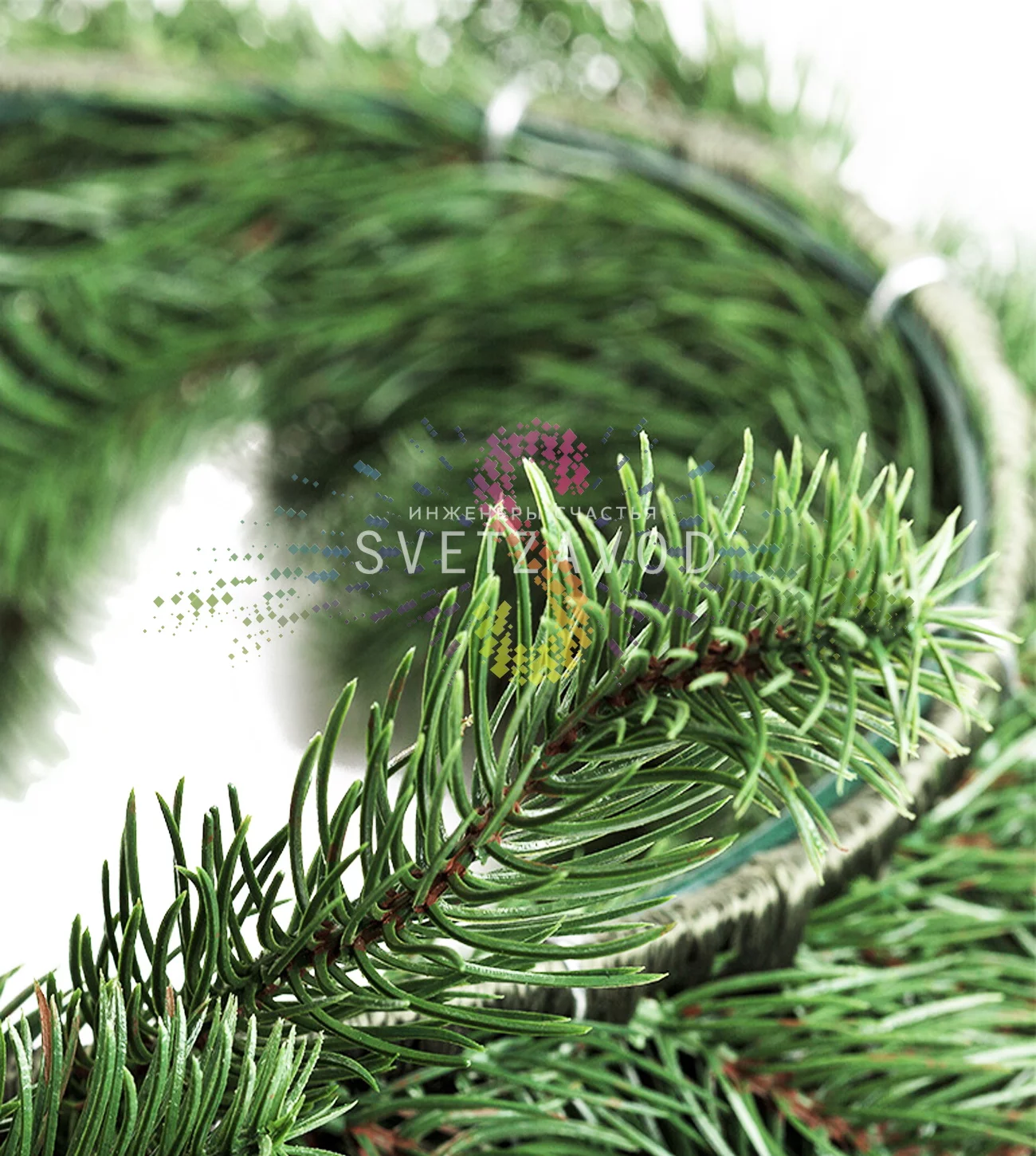 Универсальность: Этот еловый шлейф подходит для декора как внутри помещений, так и на улице. Его можно использовать как самостоятельное украшение или как основу для сложных композиций.