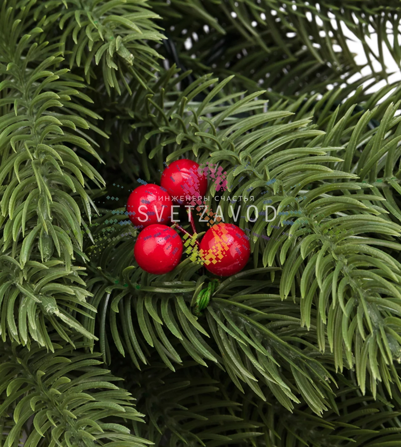 Технология литья: Ветки и хвоя изготовлены методом литья под давлением. Это гарантирует высочайшую детализацию, прочность и устойчивость к выцветанию. Такой еловый шлейф не отличить от натурального, но он не осыплется и не завянет.