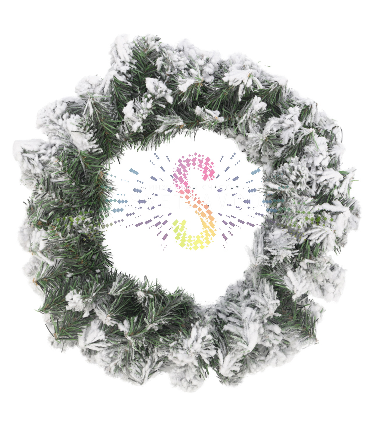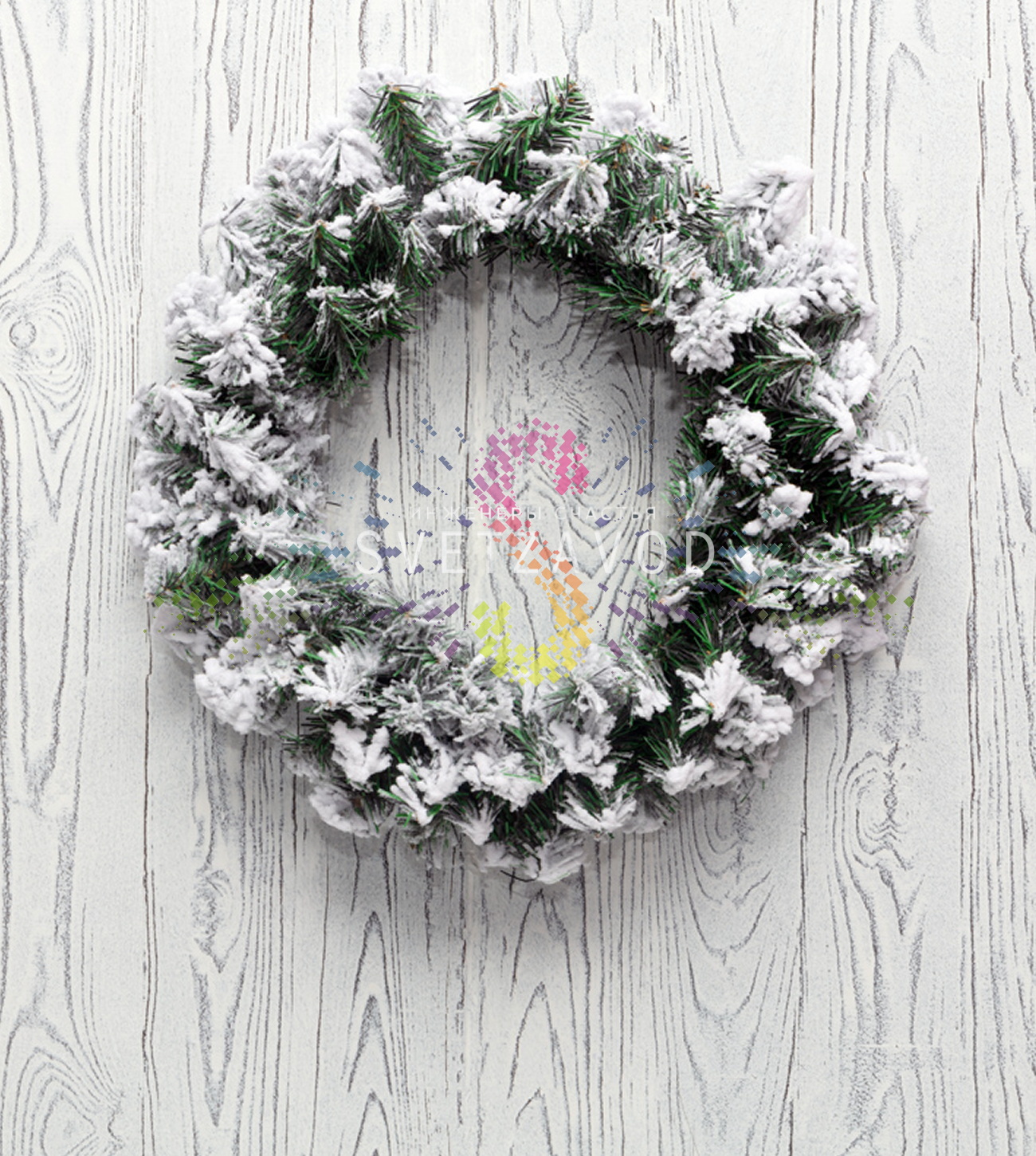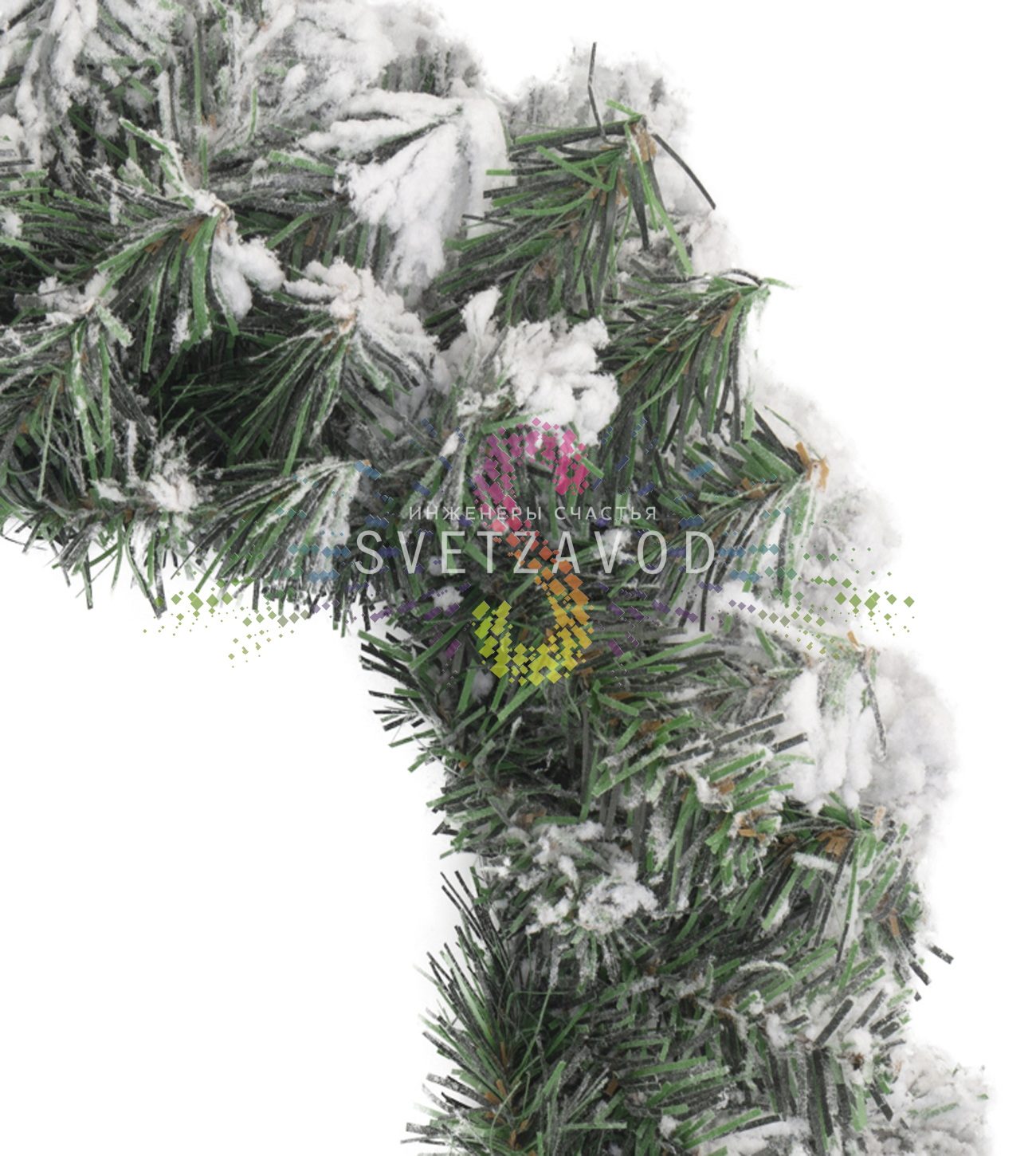 Современные технологии производства: Венок изготовлен из 100 отдельных веток ПВХ, каждая из которых имеет темно-зеленую основу с искусно нанесенным белым покрытием, имитирующим свежий снег. Мягкие иголки не колются, что делает украшение безопасным для детей и животных. Конструкция отличается повышенной износостойкостью.
