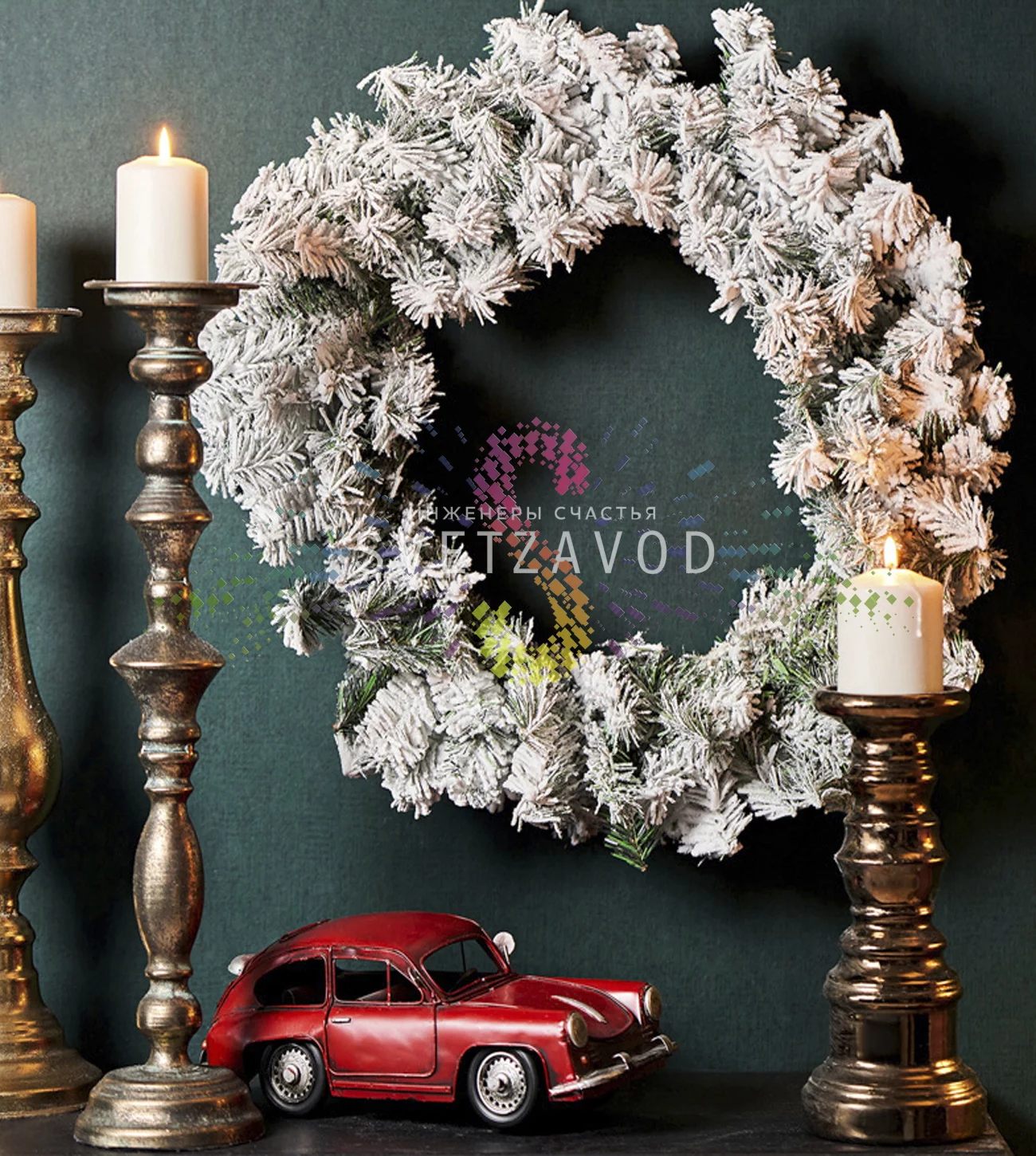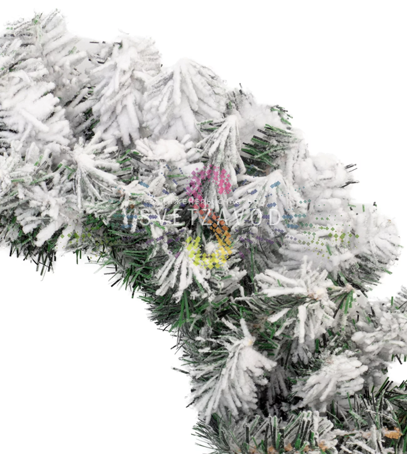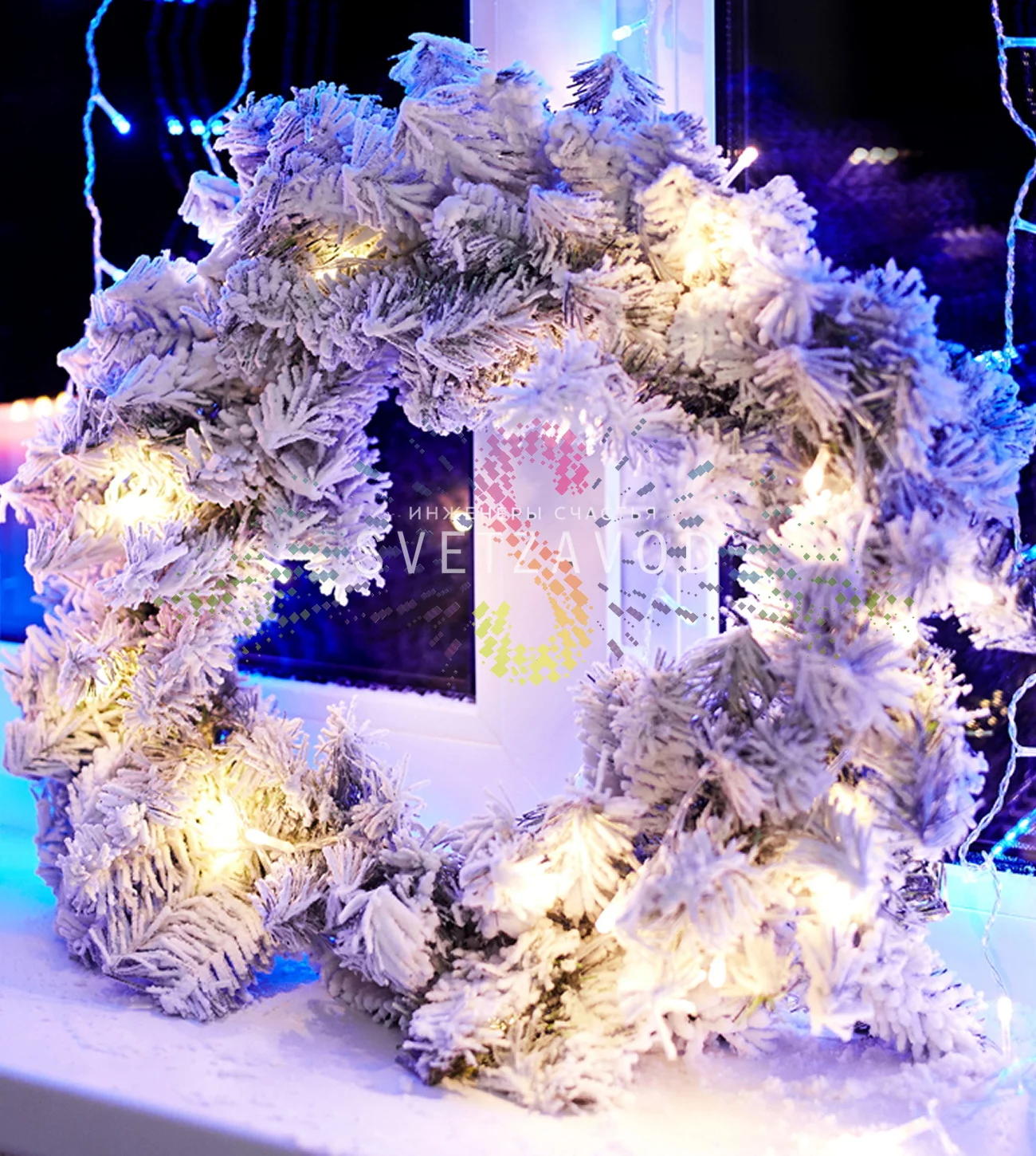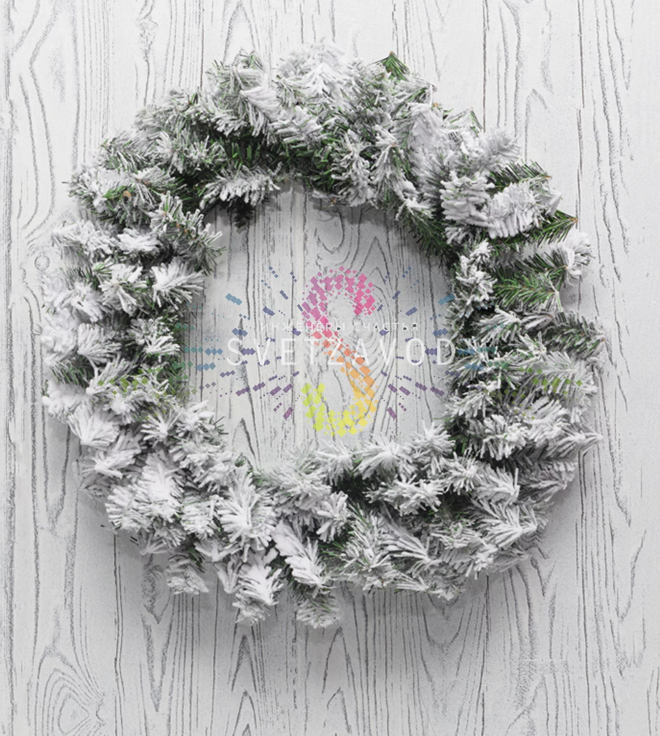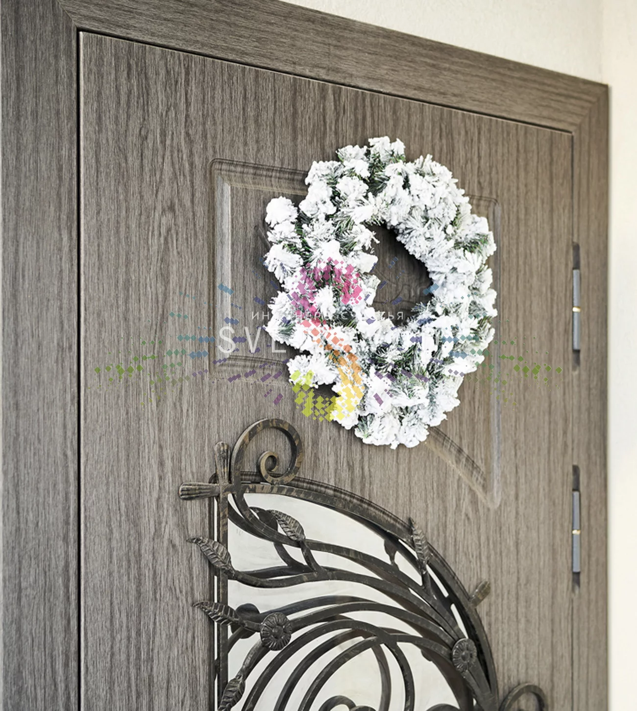 Детали и качество: Венок состоит из 135 отдельных веток из высококачественного ПВХ, каждая из которых детально проработана для имитации натуральной хвои. Специальное покрытие создает эффект свежего снега, который не осыпается. Прочный каркас сохраняет идеальную круглую форму на протяжении всего срока службы.