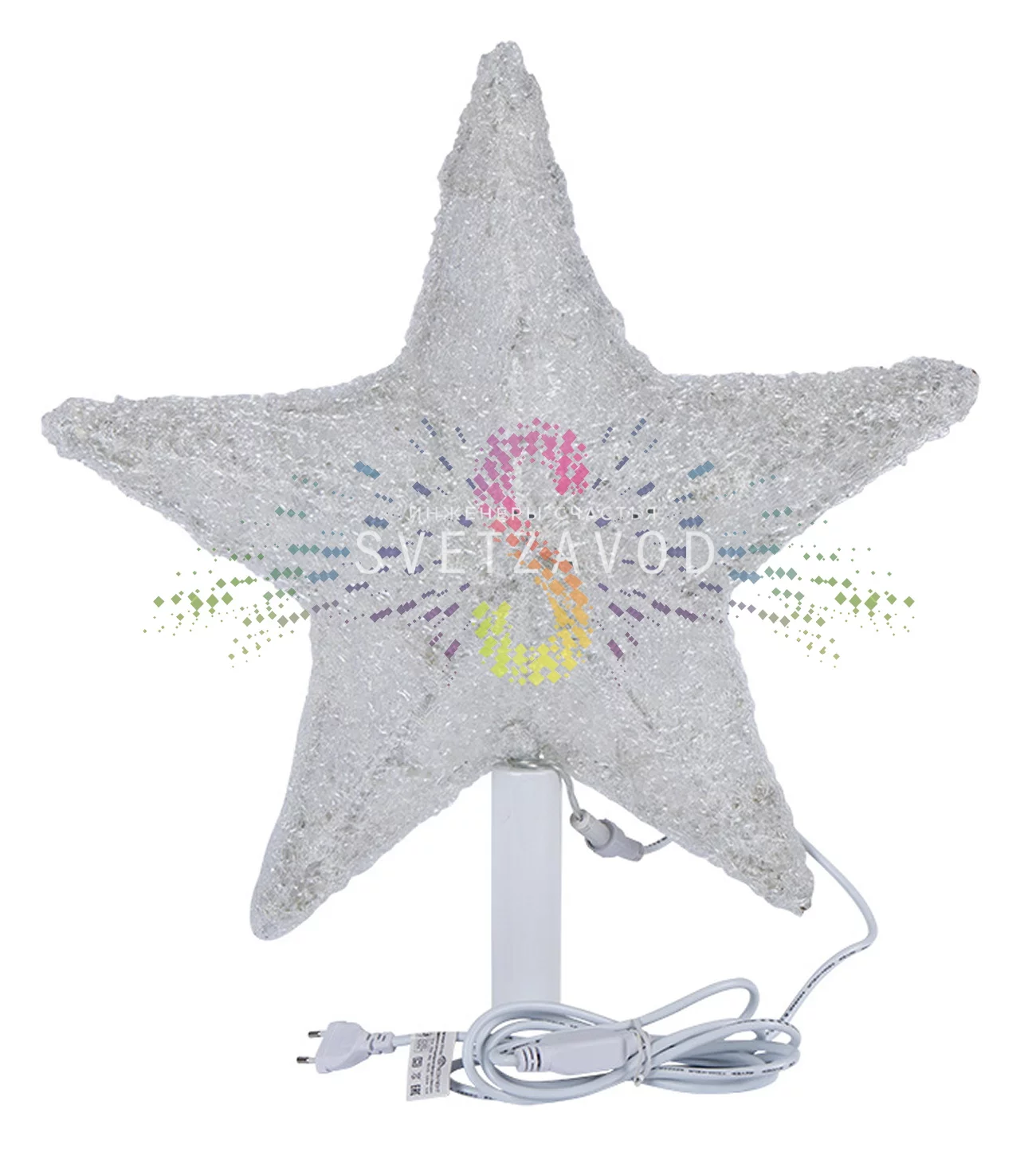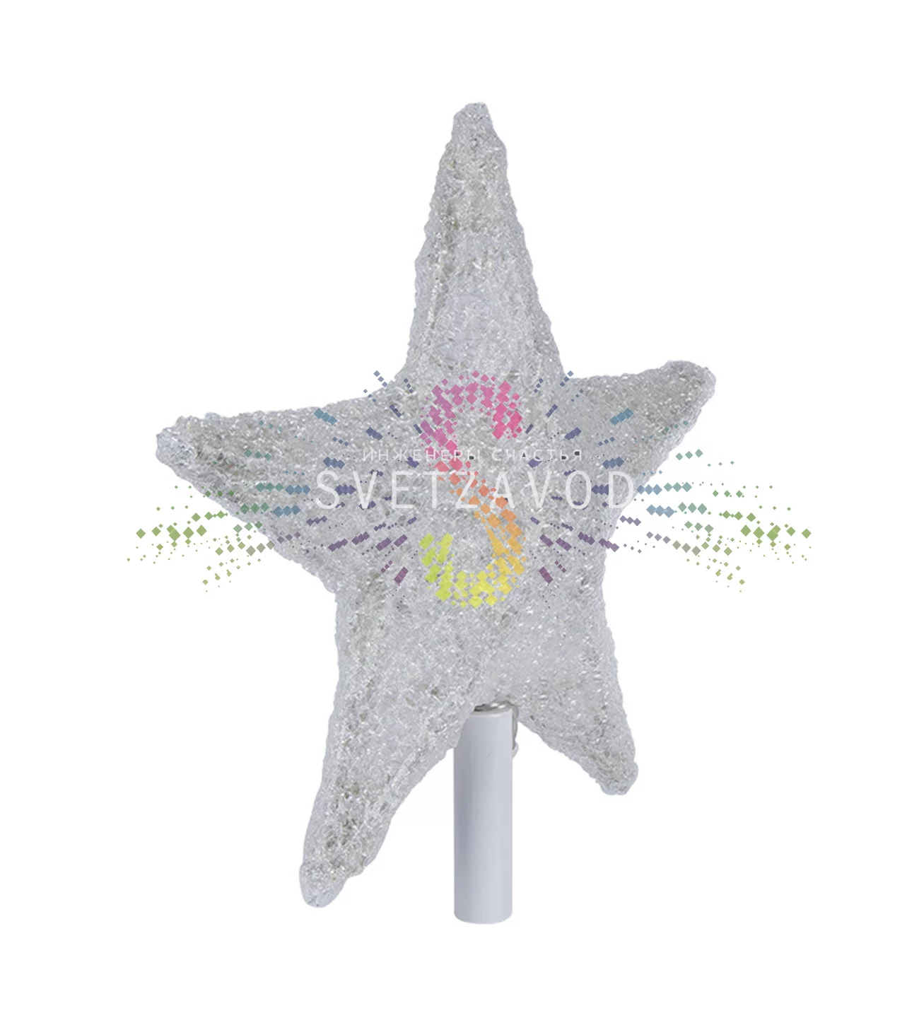 Эта звезда предназначена specifically для установки на макушку елки, создавая завершающий акцент праздничного убранства. Ее классический белый цвет и четкие грани подчеркивают элегантность и торжественность момента.