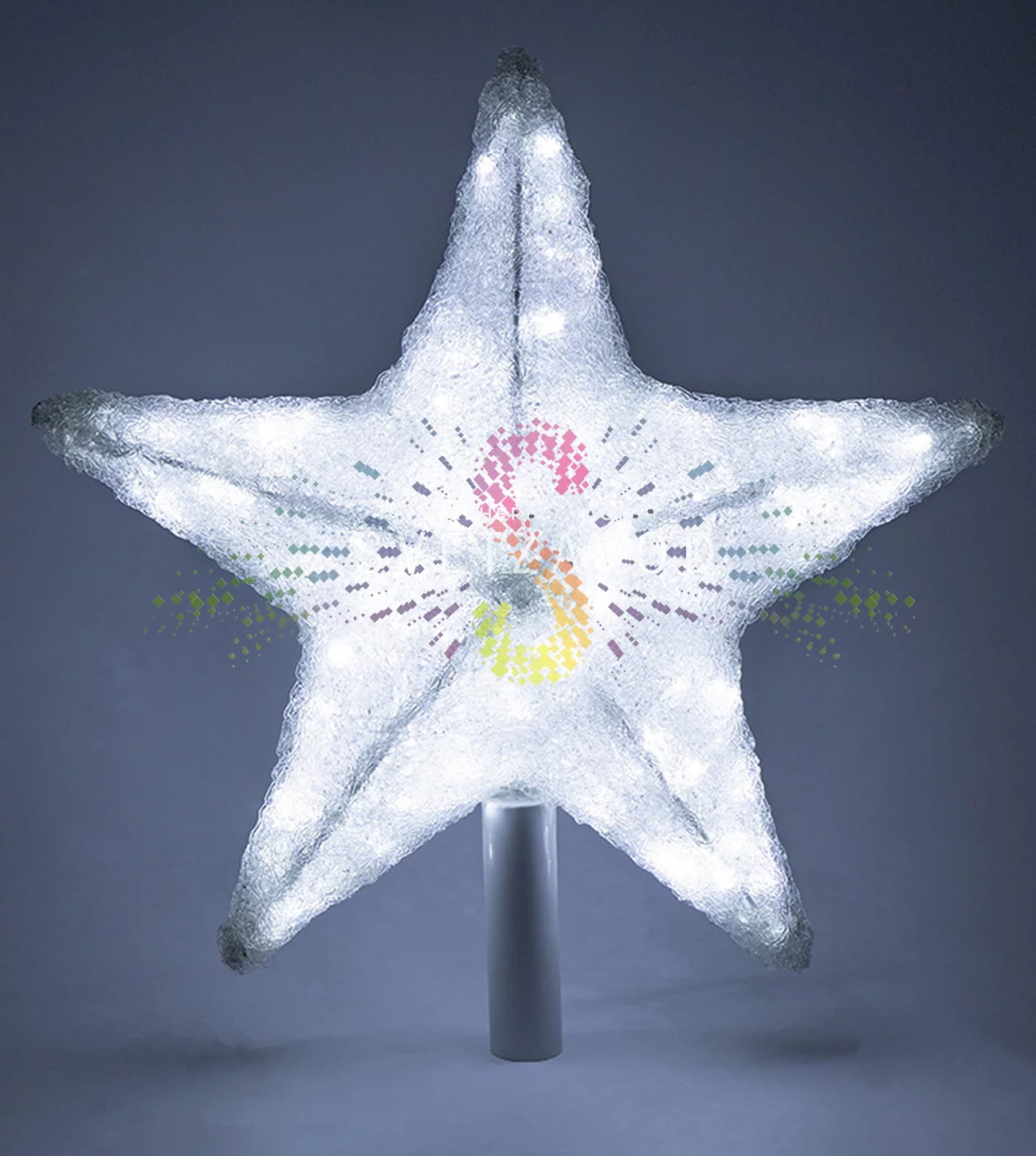 Установка не требует специальных навыков. Просто закрепите звезду на верхушке елки с помощью съемной трубы или используйте кольцо для подвеса, чтобы украсить помещение.