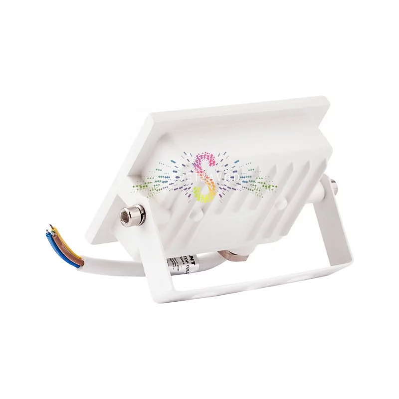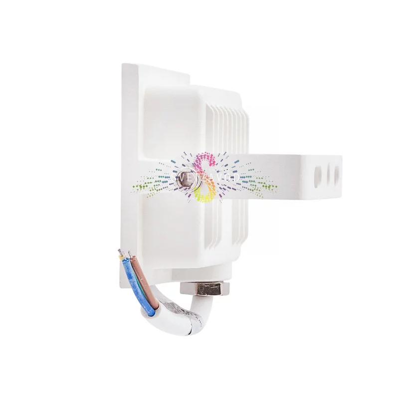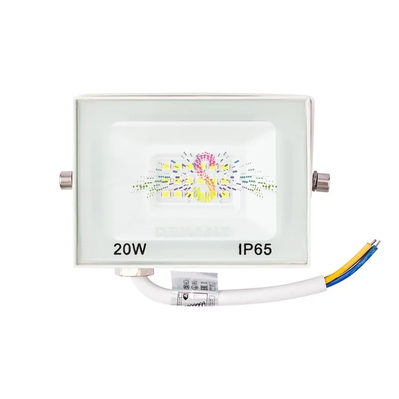 Надежность и безопасность: Корпус прожектора выполнен из прочного белого пластика с высокой степенью защиты IP65, что обеспечивает полную защиту от пыли и струй воды. Модель рассчитана на работу при температуре от -40°C до +40°C.