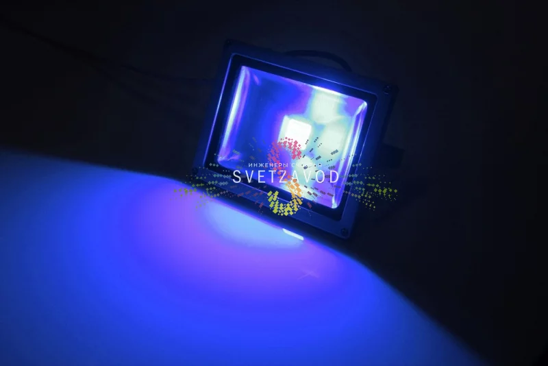 Синий светодиодный прожектор мощностью 20Вт создает равномерное заливающее освещение для различных объектов.
