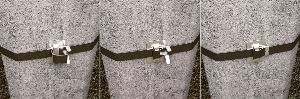 Предназначена для работы со стандартной бандажной лентой, является ключевым элементом для крепления консоли на столб освещения.