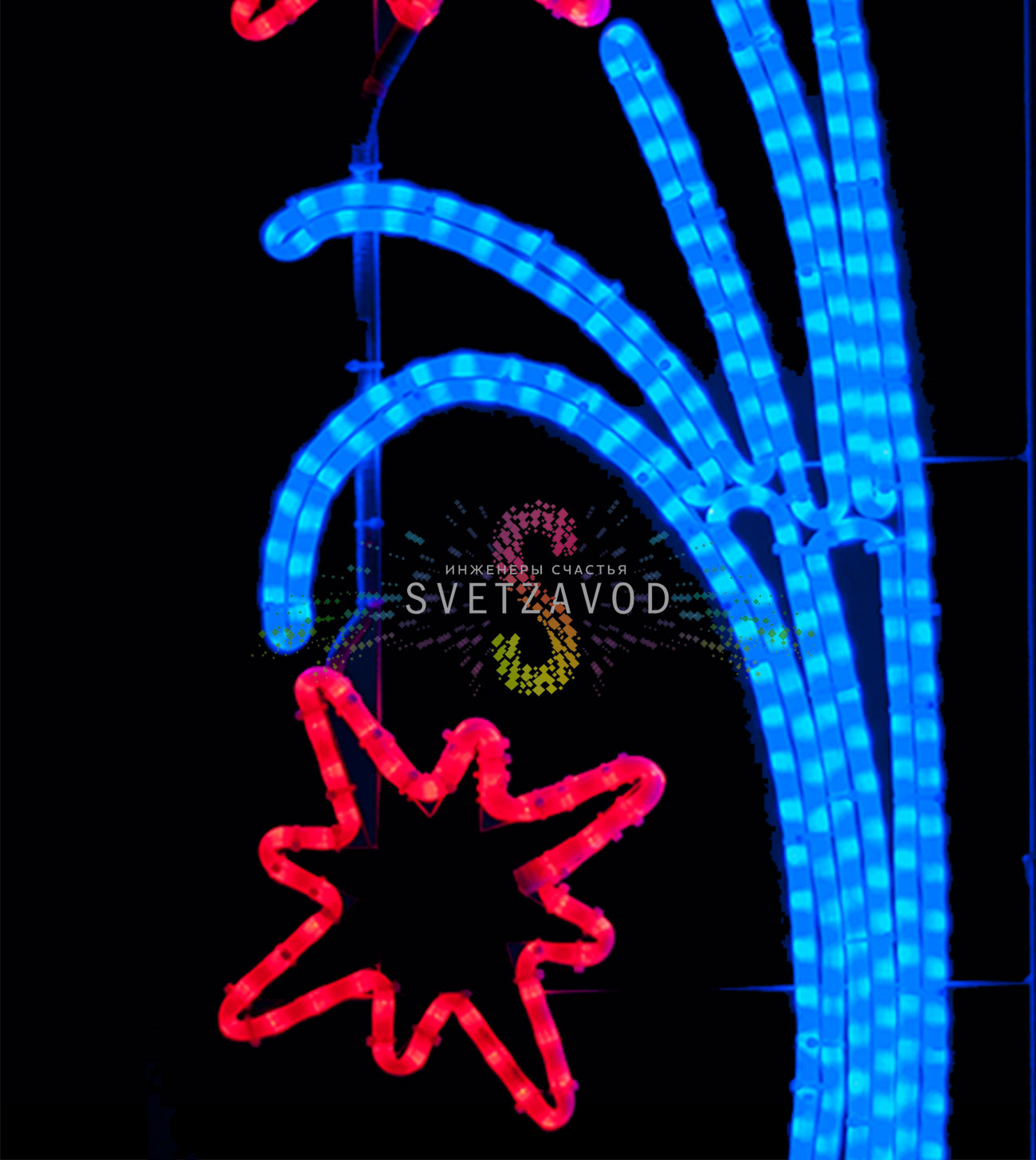 Размеры 150х50 см позволяют устанавливать световую консоль на опоры любой высоты. Красные звезды с синим шлейфом создают эффектный визуальный акцент.