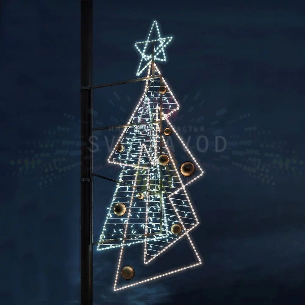 Эта световая консоль, выполненная в виде стилизованной ели, идеально подходит для муниципального и коммерческого использования при оформлении площадей, парков и центральных улиц.