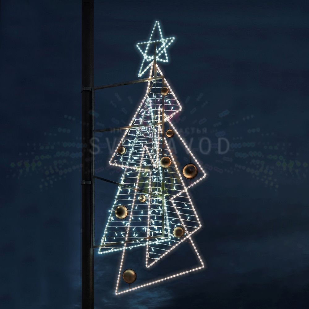Инновационная технология освещения: Консоль "Ель" представляет собой современное решение для декоративного освещения городских пространств. Модель с размерами 190×90 см выполнена в классическом белом цвете с теплым белым свечением, что создает уютную атмосферу в вечернее время.
