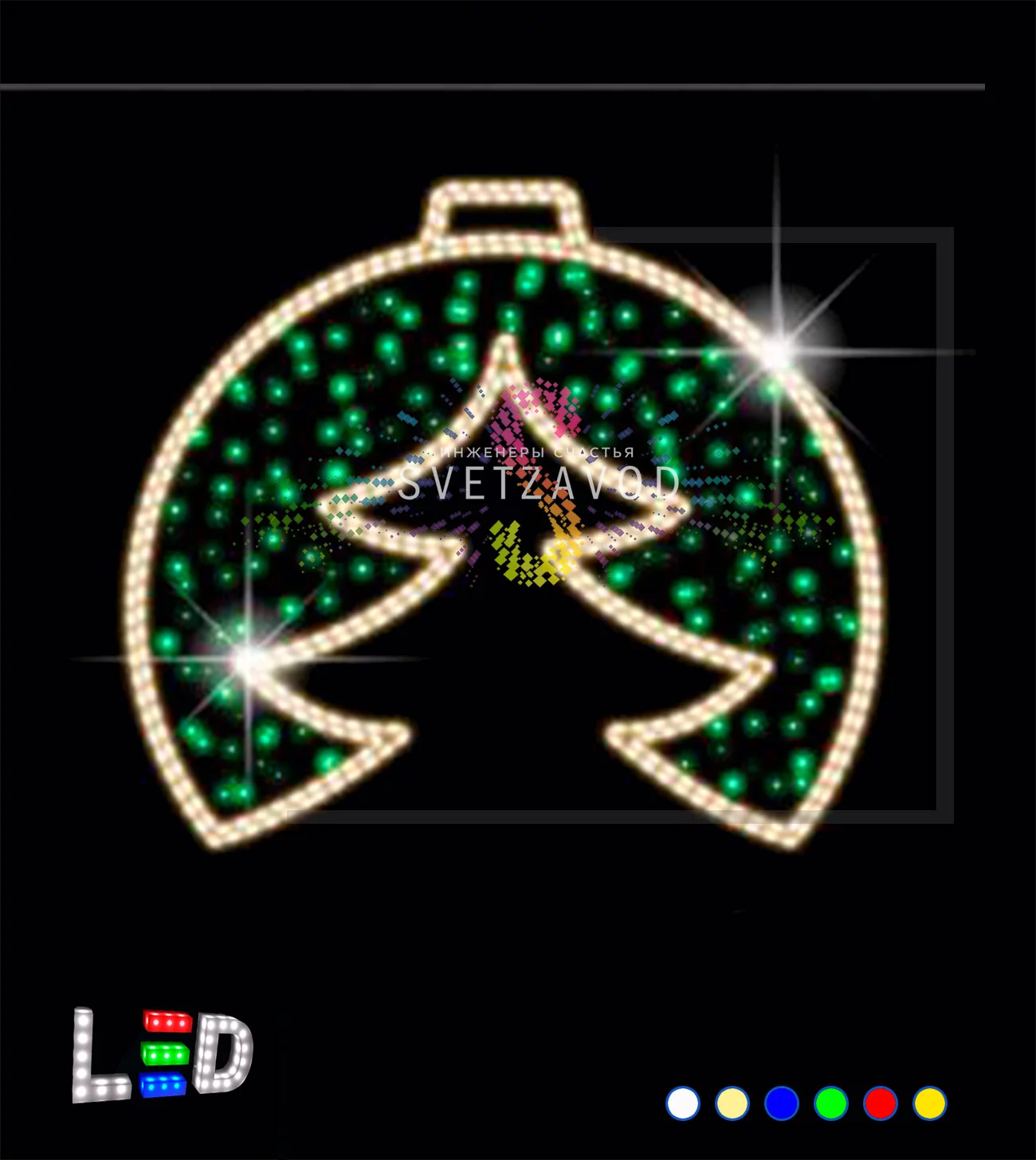 Создайте праздничную атмосферу: Светодиодная консоль "Елочка в шаре" длиной 130 см с теплым белым и зеленым свечением идеально подходит для украшения уличных опор в новогодний период. Интенсивное освещение видно на расстоянии десятков метров, создавая волшебную атмосферу в городском пространстве. Это решение для тех, кто хочет заказать украшение столбов быстро и качественно.