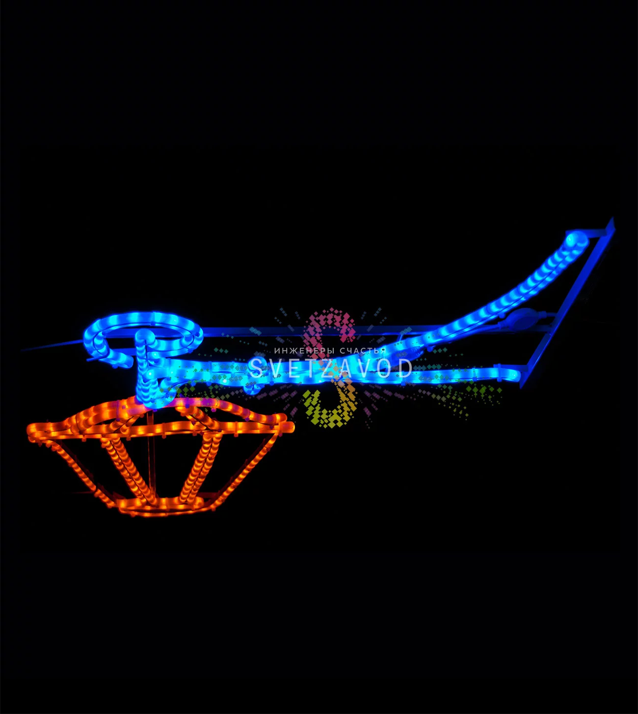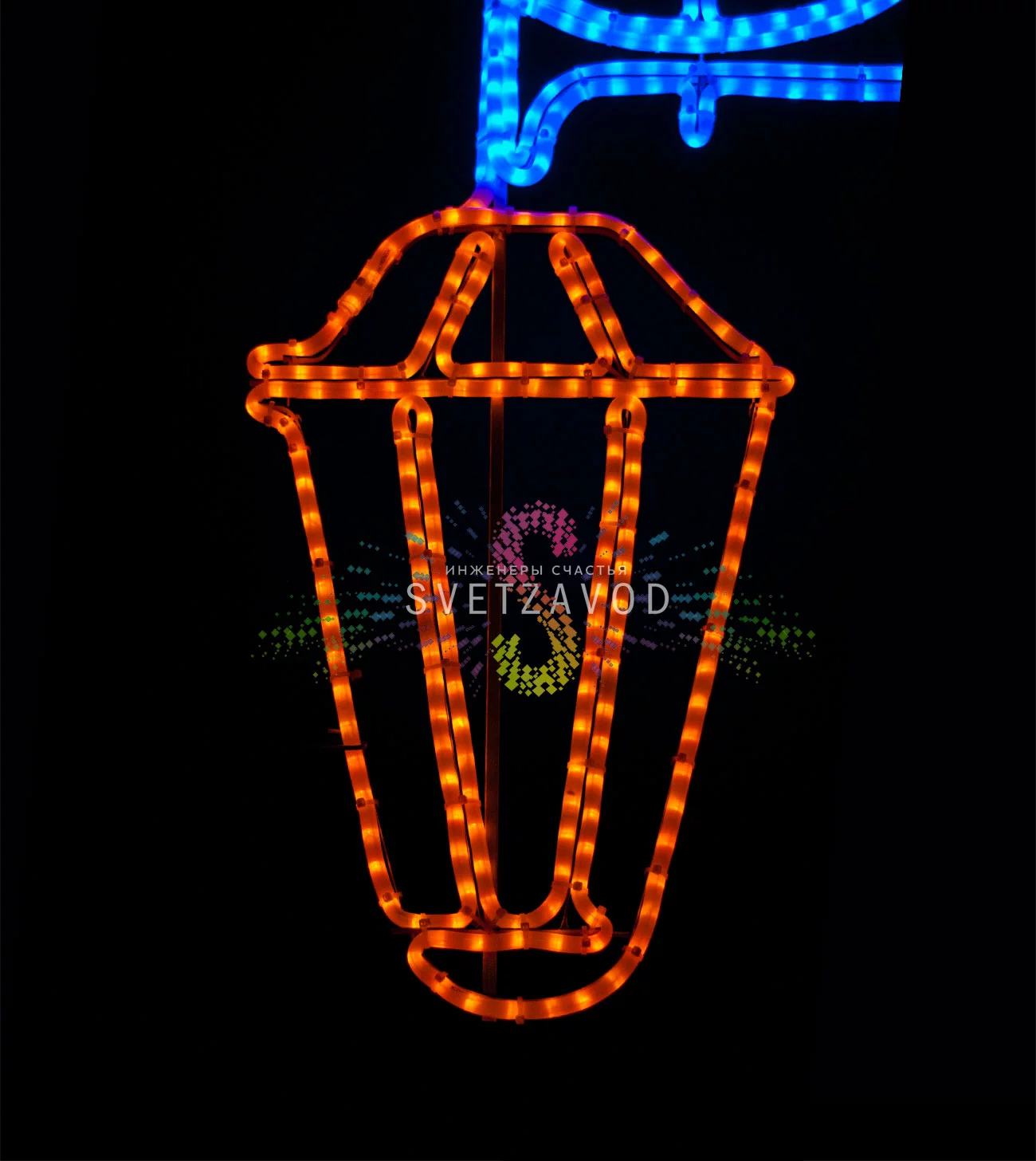 Яркое двухцветное свечение (синий + желтый) создает выразительный акцент в темное время суток, выполняя как эстетическую, так и практическую функцию. Это современная и экономичная альтернатива традиционным гирляндам.