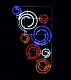Множество причудливых кругов белого, синего, красного и оранжевого цвета — превосходное праздничное украшение на любой случай. Размер консоли позволяет устанавливать ее на любой высоте опоры, а интенсивность свечения распространяется в радиусе нескольких десятков метров и хорошо видна издалека. Такое световое изделие идеально подходит для установки: на улицах города; в парковых зонах, на мостовых переходах и пролетах, на территории гостиничных, туристических, спортивных комплексов.