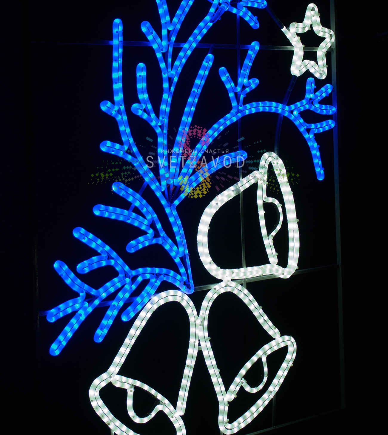Современное LED-решение: Светодиодная консоль "Колокольчики на ветке" создает праздничную атмосферу с ярким равномерным свечением. Размеры 150×120 см обеспечивают хорошую видимость с большого расстояния, делая эту световую консоль идеальным выбором для муниципального и частного декора.