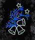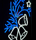 Эта световая конструкция специально разработана для долговременной эксплуатации на улице. Она обеспечивает не только эстетику, но и практическую пользу — дополнительную подсветку территории. Благодаря продуманному креплению, монтаж консоли на столб освещения выполняется быстро и надежно с помощью бандажной ленты и скреп, что значительно расширяет сферу ее применения. Композиция из белых колокольчиков на синей ветке создает элегантное и стильное новогоднее настроение, подходящее как для муниципального оформления, так и для коммерческих объектов.