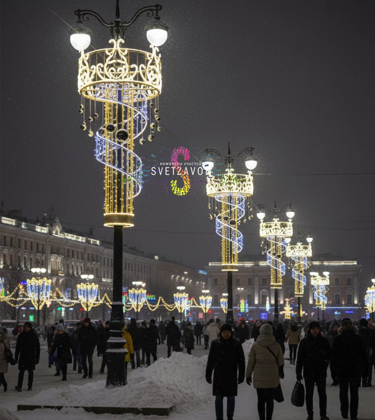 Универсальность применения: Эта консоль идеально подходит как для постоянного архитектурного освещения, так и для создания праздничной атмосферы. Заказать такие украшения для столбов можно для оформления городских пространств к Новому году и другим праздникам.
