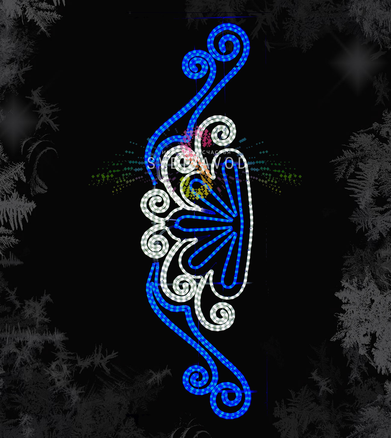 Современное светодиодное решение: Консоль "Лавина" представляет собой инновационное украшение для опор освещения размером 200×65 см в бело-синем цветовом исполнении. Идеально подходит для создания праздничной атмосферы и функционального освещения территорий. Интенсивное свечение видно на расстоянии десятков метров, что делает ее оптимальным выбором для муниципального и частного использования.