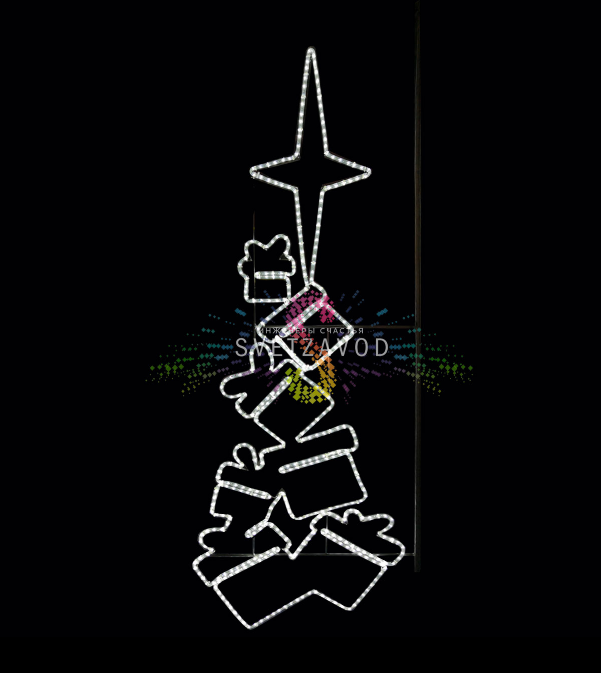 Создайте праздничную атмосферу: Светодиодная консоль "Подарки" - это готовое решение для декоративного уличного освещения. Конструкция с тематическим дизайном в виде праздничных подарков создает яркое настроение и заметна издалека благодаря равномерному свечению светодиодов.