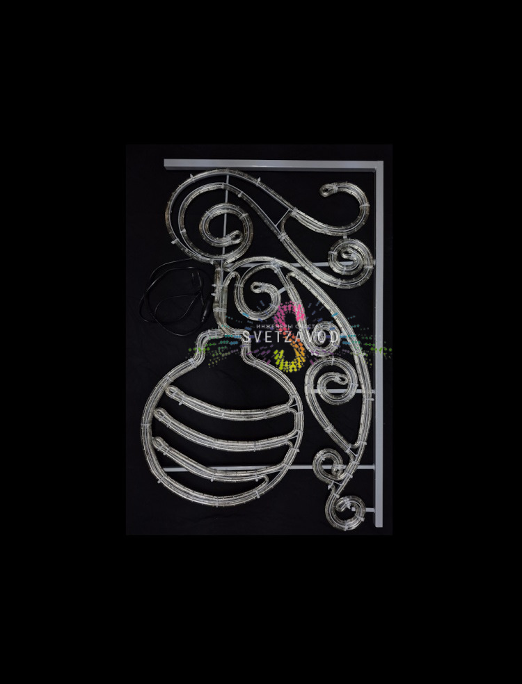 Декоративный элемент выполнен в виде шара диаметром 100 см на консоли длиной 65 см. Универсальное крепление позволяет легко монтировать конструкцию на фонарные столбы, фасады зданий или специальные опоры.