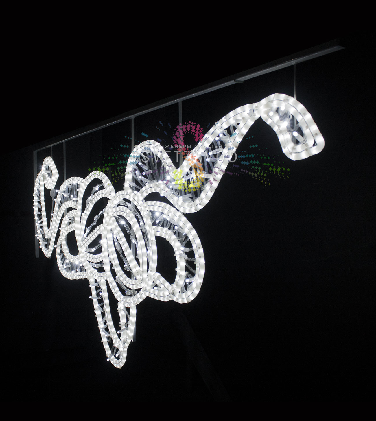 Инновационное уличное освещение: Светодиодная консоль "Шары на белой ленте" представляет собой современное решение для декоративного и функционального освещения городских пространств. С габаритами 200×90×3 см она создает равномерное белое свечение, заметное на расстоянии десятков метров, что делает ее идеальным выбором для украшения улиц, парков и коммерческих территорий.