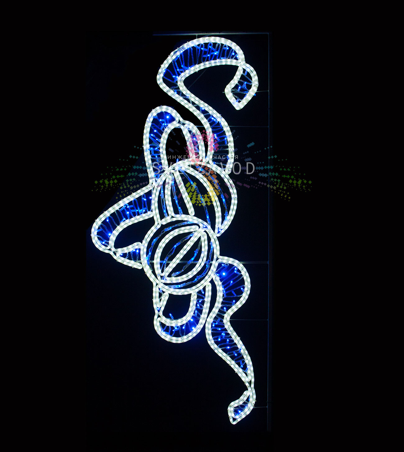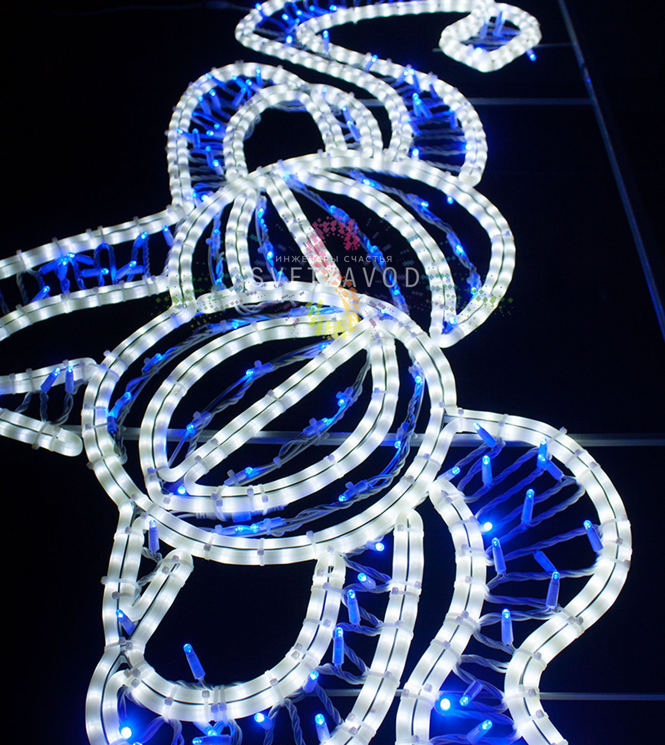 Эта консоль выполнена в виде двух светящихся шаров, соединенных длинной сине-белой лентой. Она легко монтируется на опоры освещения, создавая праздничную атмосферу и обеспечивая безопасность в темное время суток.