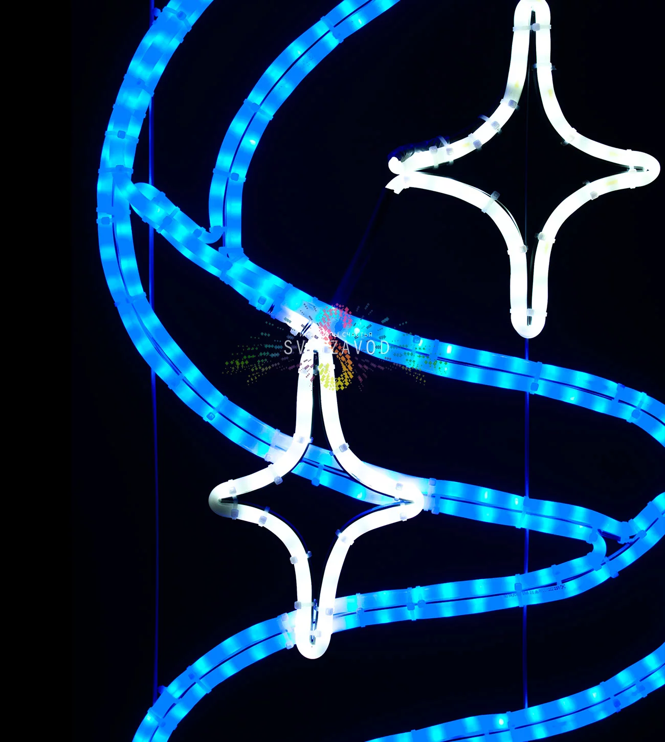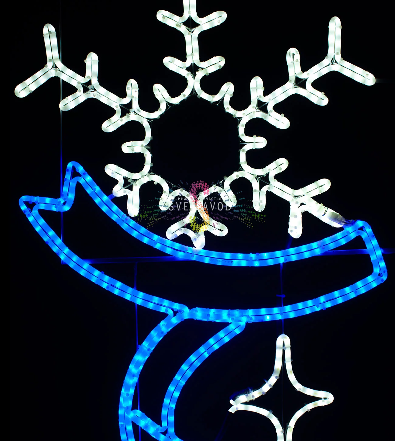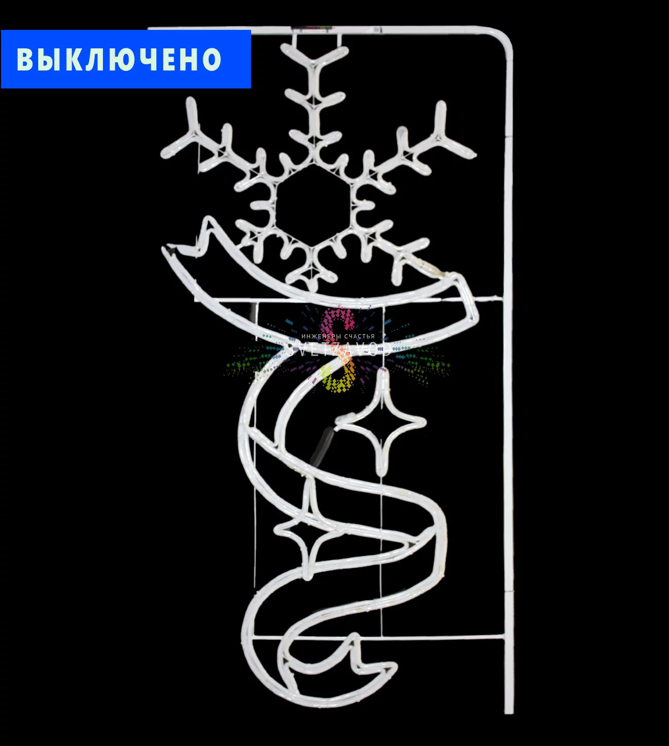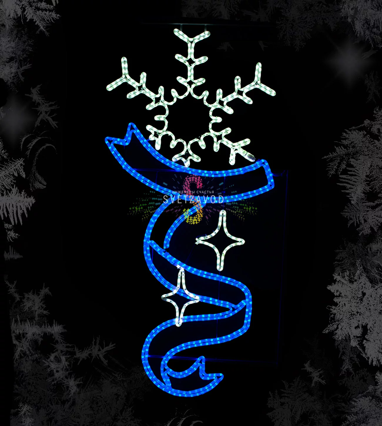 Светодиодная консоль "Снежинка с лентой" — это готовое решение для муниципальных служб и управляющих компаний, которым нужно быстро и надежно украсить улицы к праздникам. Конструкция создает яркое, равномерное сине-белое свечение, которое отлично видно даже в снегопад, и монтируется на любые типы опор освещения. Это выгодный способ заказать украшение столбов без лишних хлопот.