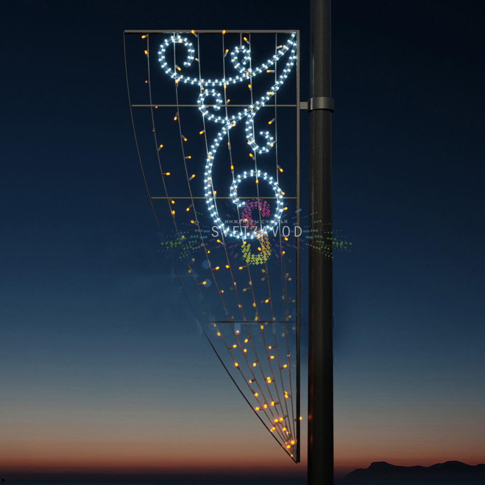 Современное решение для городского декора: Светодиодная консоль "Вьюга" разработана специально для украшения уличных опор и столбов освещения в рамках праздничного оформления. Модель с размерами 187х76 см и классическим бело-желтым цветовым исполнением создает яркую визуальную точку в городском пространстве. Конструкция адаптирована для использования во всех климатических зонах России и отличается повышенной устойчивостью к внешним воздействиям.