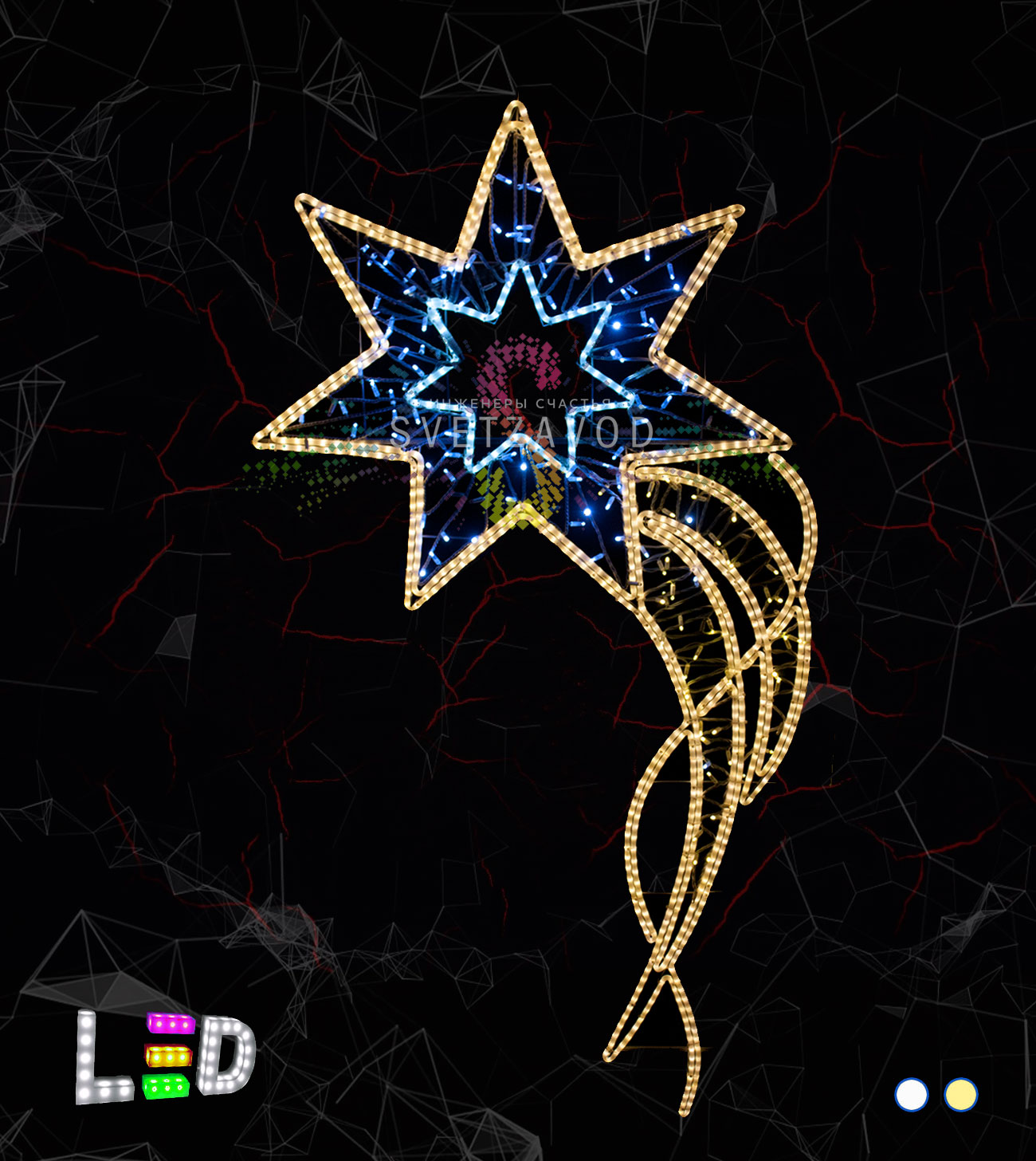Светодиодная консоль "Звезда" размером 250х100х3 см, цвет свечения: белый и теплый белый с мерцанием.