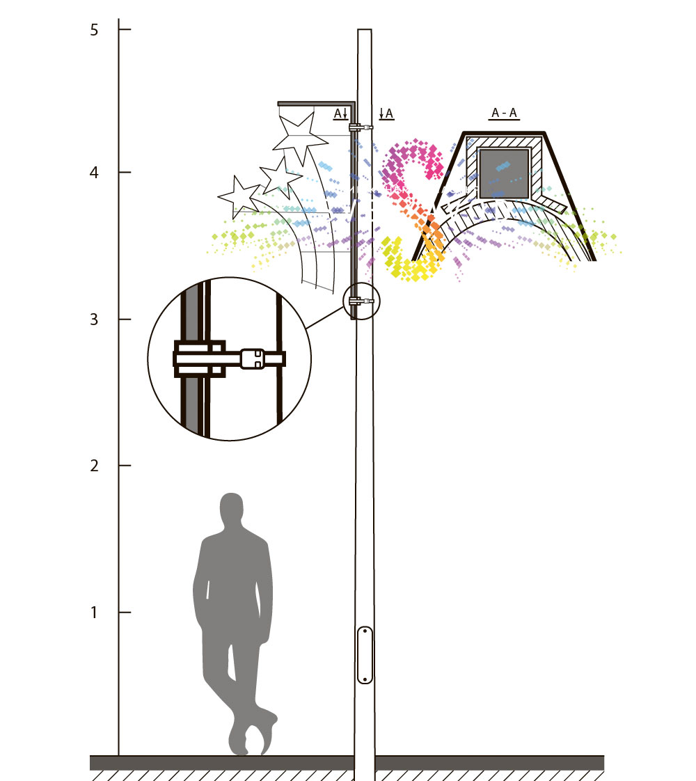Установка консоли на опору освещения не требует специальных навыков. Конструкция крепится с помощью бандажной ленты и скреп, что позволяет быстро монтировать и демонтировать украшение при необходимости.