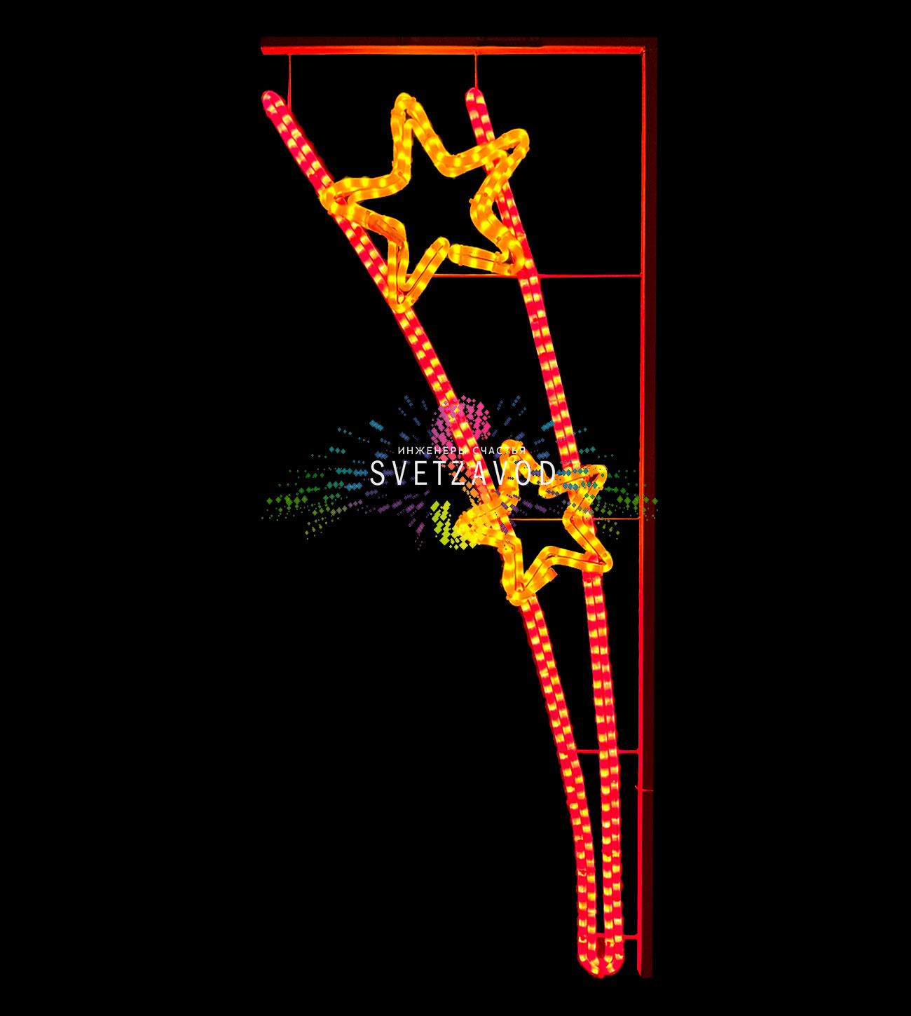 Символ Победы для вашего города: Светодиодная консоль "2 Звезды" создана специально для празднования Дня Победы 9 мая. Ее стилизованный дизайн в виде буквы V красного цвета с двумя звездами в патриотической цветовой гамме (желтый и красный) мгновенно создает торжественную атмосферу. Это готовое решение для муниципального праздничного оформления, которое подчеркивает значимость события и память о подвиге.