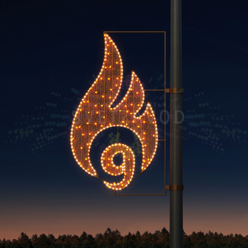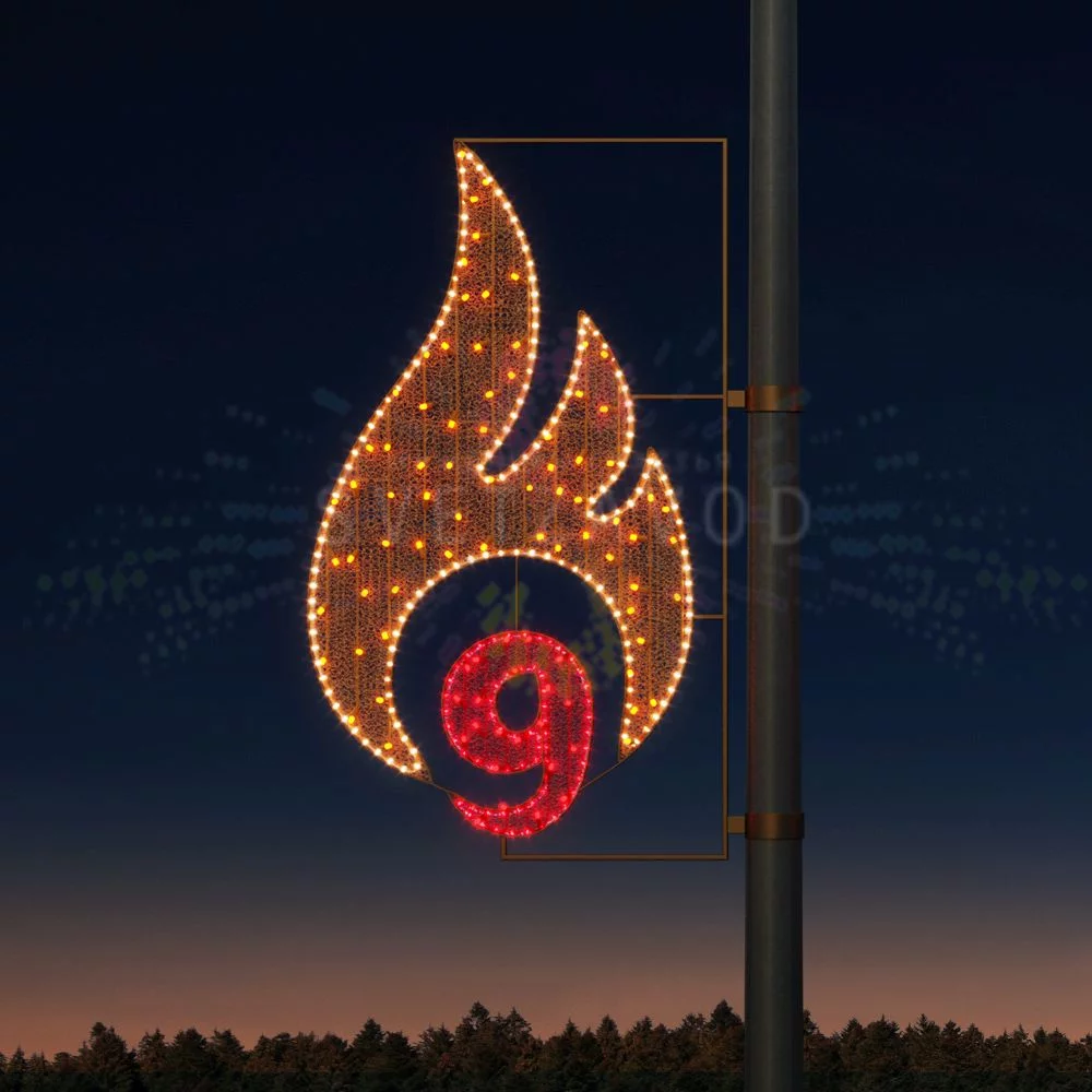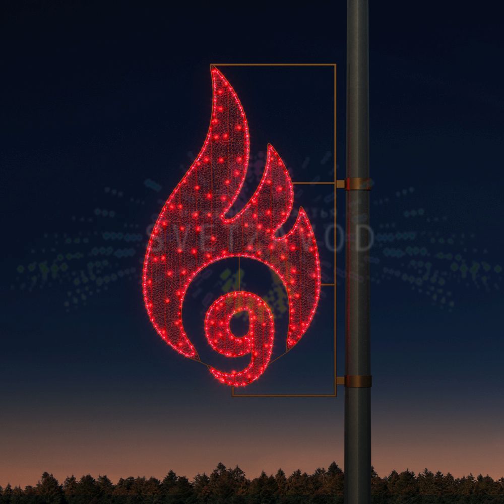 Светодиодная консоль "День Победы": Патриотичное украшение для праздничного оформления улиц к 9 мая. Конструкция в виде цифры 9 с эффектом пламени создает торжественную атмосферу, напоминая о подвиге героев. Идеальное решение для муниципальных закупок и украшения городского пространства.