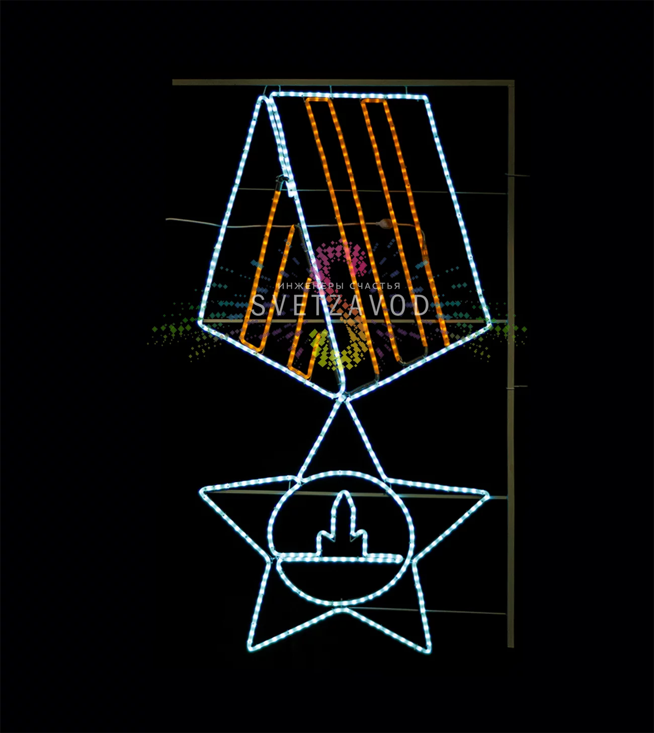 Светодиодная консоль "Орден Славы" — это готовое решение для праздничного оформления улиц к 9 мая. Проблема скучного и однообразного городского пространства в праздник решается яркой, патриотичной инсталляцией. Консоль в виде ордена на георгиевской ленте создает торжественную атмосферу Дня Победы, привлекая внимание и подчеркивая значимость события. Это идеальный вариант, чтобы заказать украшение столбов к 9 мая для центральных улиц, площадей и мемориалов.