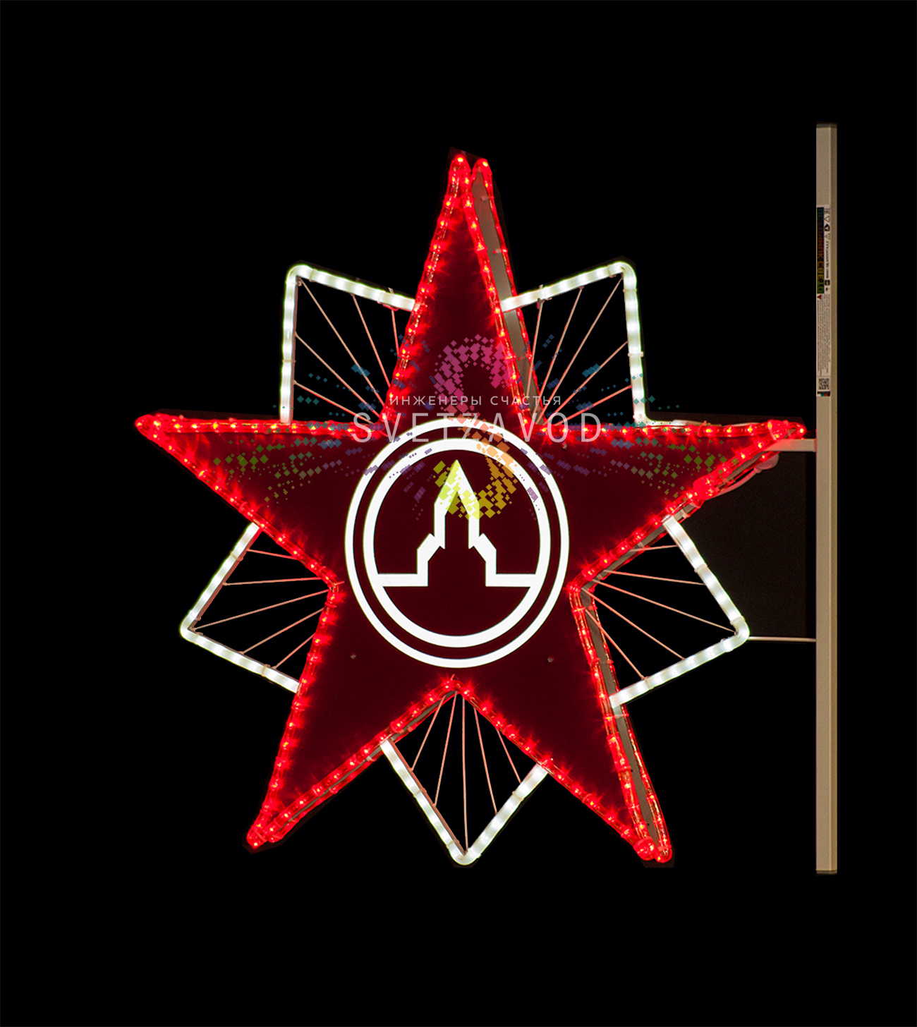 Символ Победы для вашего города: Светодиодная консоль «Орден ВОВ №2» — это торжественное и узнаваемое украшение для празднования Дня Победы. Изделие выполнено в виде ордена с двухцветной контурной подсветкой, сочетающей красный и белый цвета. Размер 90×90 см делает консоль заметным элементом декора, создающим атмосферу памяти и уважения к героям Великой Отечественной войны.