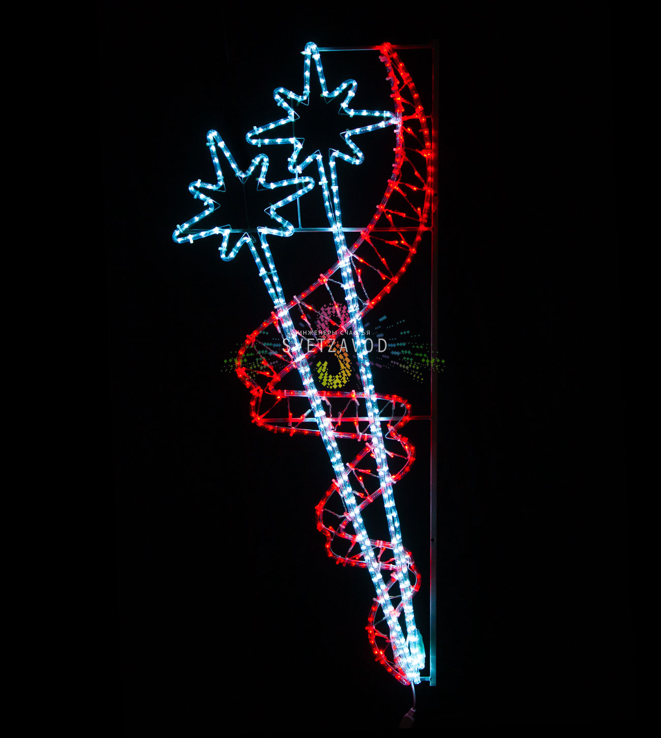 Современное праздничное освещение: Светодиодная консоль "Салют" создана специально для торжественного украшения городов к 9 Мая. Её дизайн в виде двух залпов праздничного салюта, обрамленных красной лентой, символизирует победу и память. Сочетание белого и красного цветов соответствует традиционной праздничной палитре. Консоль легко монтируется на опоры освещения и подключается к сети, позволяя быстро организовать масштабное праздничное оформление.