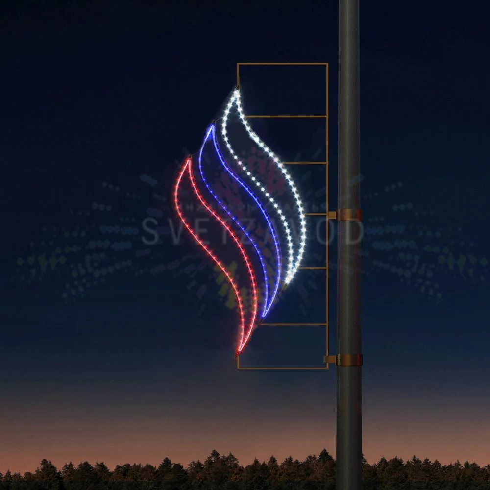 Решение: Светодиодная консоль «Всполохи триколор» — это готовое решение для праздничного украшения города. Её динамичный дизайн в виде языков пламени в цветах российского флага (белый, синий, красный) символизирует вечный огонь памяти и национальную гордость. Установив такие консоли на 9 мая, вы создадите единое торжественное пространство на центральных улицах, площадях и у мемориалов. Консоль станет центральным элементом, привлекающим внимание и формирующим настроение праздника. Заказать украшение столбов к 9 мая с доставкой по всей России можно прямо у производителя.
