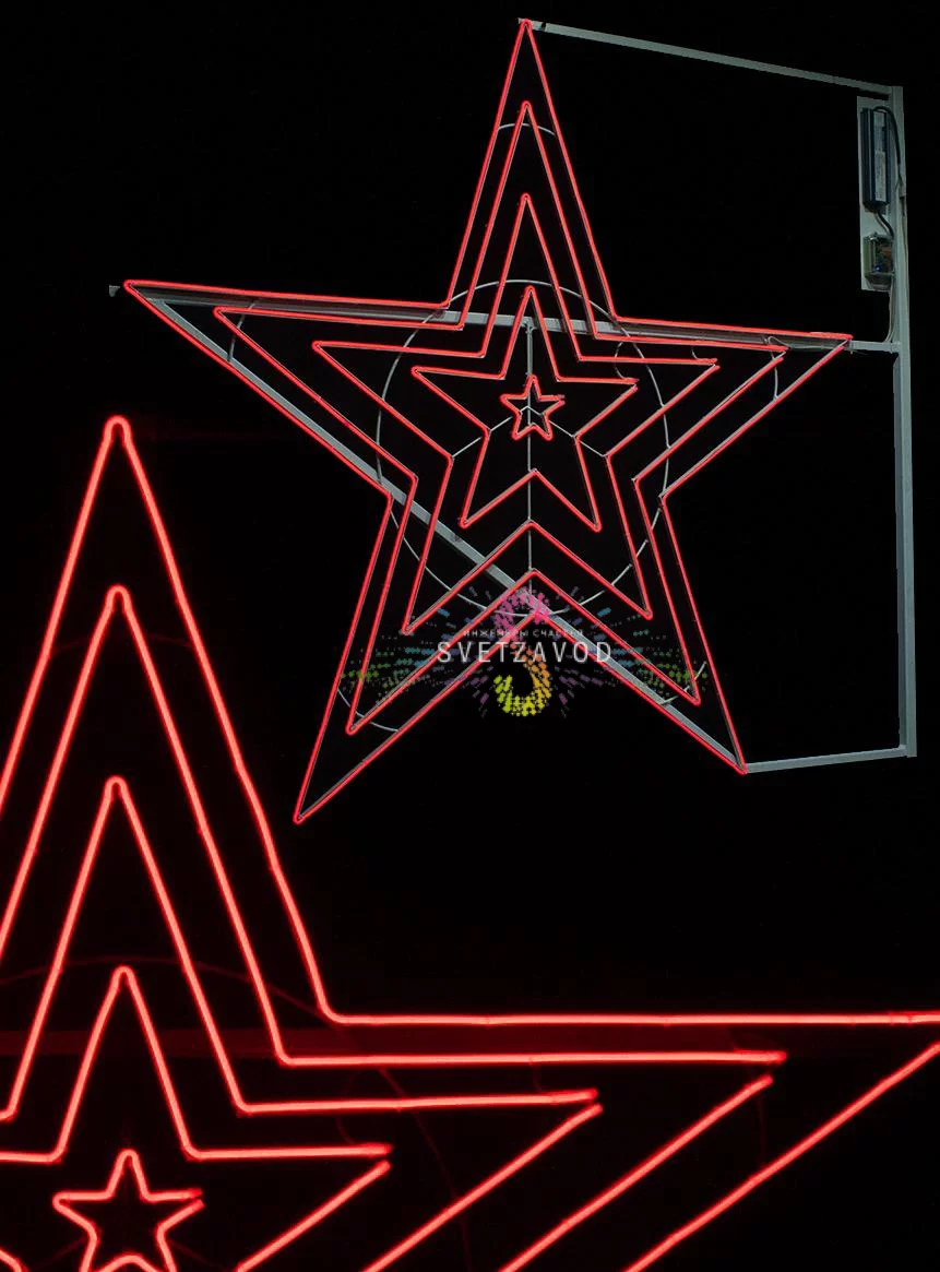 Универсальность применения: Купить световые консоли ко Дню Победы — это решение для комплексного оформления городского пространства. Двухсторонняя звезда одинаково хорошо смотрится в разных локациях.