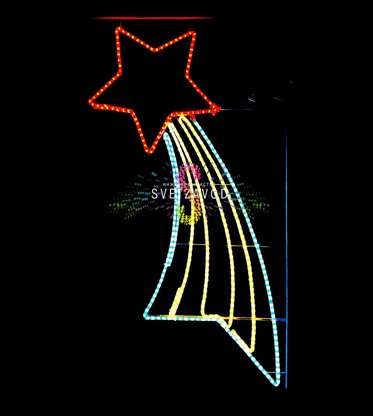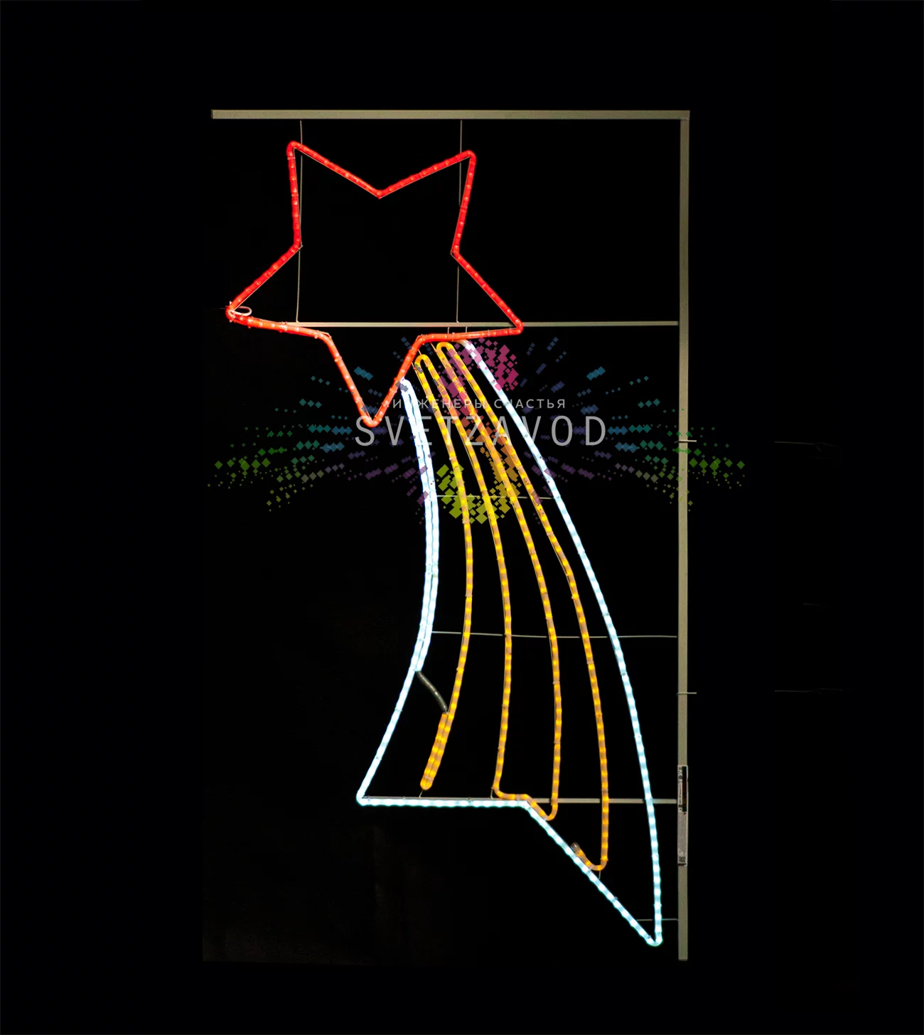 Задача: Оформить городские улицы, площади и мемориалы к Дню Победы так, чтобы это было ярко, патриотично и экономично. Решение: Готовая светодиодная консоль «Звезда с лентой» — это современный и надежный способ заказать украшение столбов к 9 мая. Она создает мощный визуальный акцент, подчеркивая значимость праздника, и работает годами при минимальных затратах на электроэнергию.