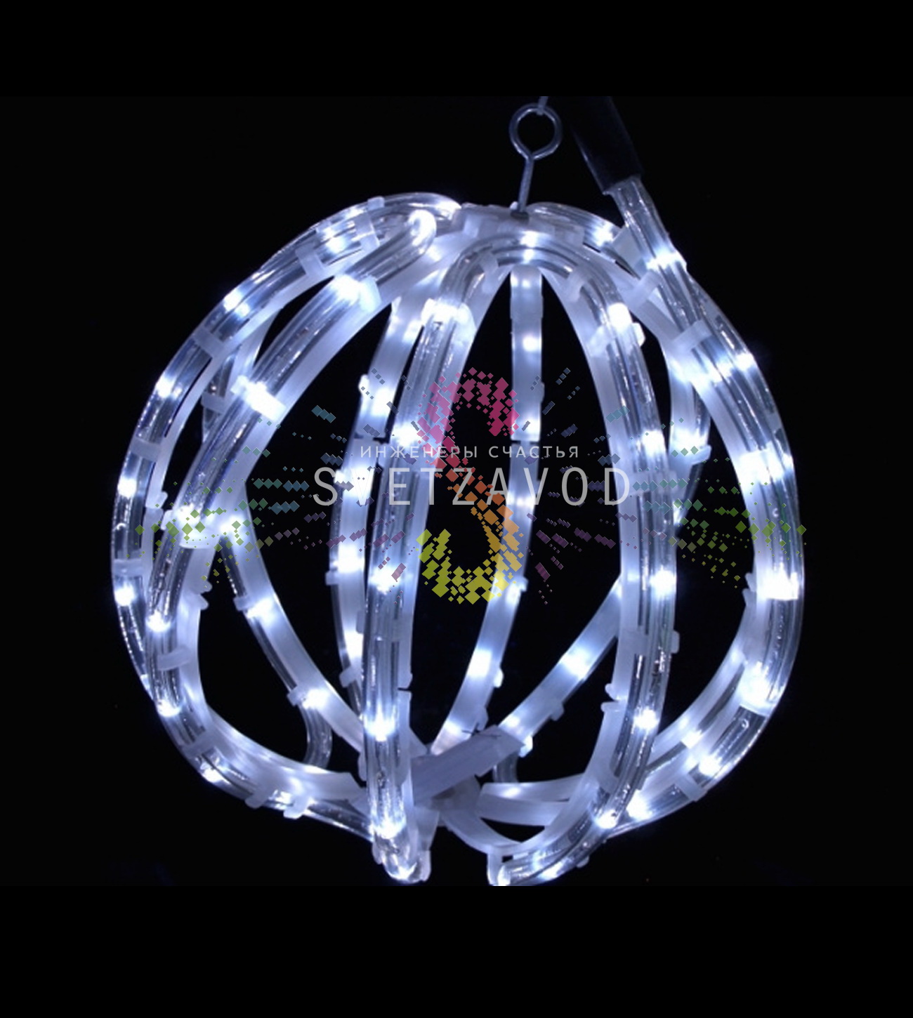 Шар выполнен из качественного дюралайта с равномерным распределением светодиодов, что обеспечивает равномерное свечение со всех сторон. Компактные размеры и легкий вес упрощают транспортировку и монтаж.