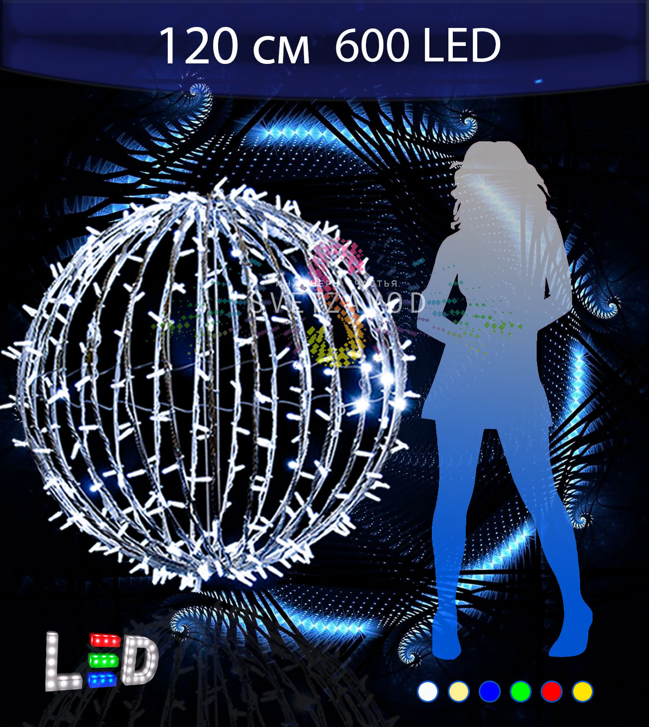 Инновационное LED-освещение: Светодиодный шар диаметром 120 см с 600 LED создает равномерное яркое свечение для профессионального декора. Эти уличные шары с IP65 устойчивы к погодным условиям, подходят для круглогодичного использования. Идеальное решение для тех, кто ищет качественные световые шары купить для коммерческих и частных проектов.