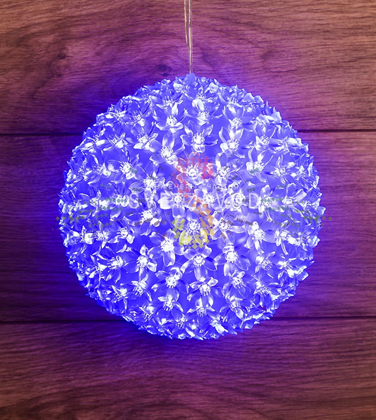 Прочный каркас: Основа шара изготовлена из легкого и устойчивого к деформации пластика, который надежно удерживает 200 светодиодов.