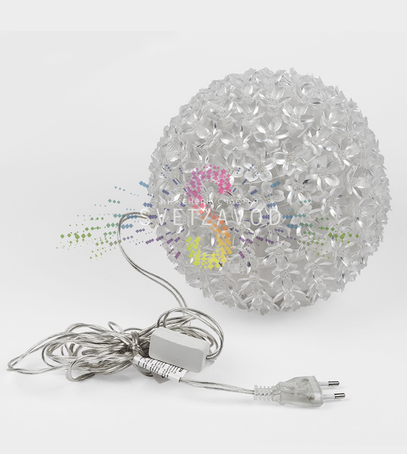 Шар работает от стандартной сети 220В, что делает его подключение простым и удобным в любых условиях.