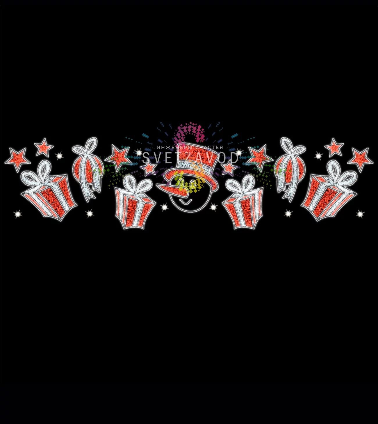 Решение: Светодиодная перетяжка "Подарки" — это готовое, яркое и долговечное решение для новогоднего украшения улиц. Она мгновенно преображает пространство, создавая атмосферу ожидания чуда. Бело-красная цветовая гамма идеально вписывается в традиционный новогодний декор, делая ваш объект заметным и привлекательным. Это отличный вариант, если вы ищете, где световые перетяжки заказать для профессионального оформления.