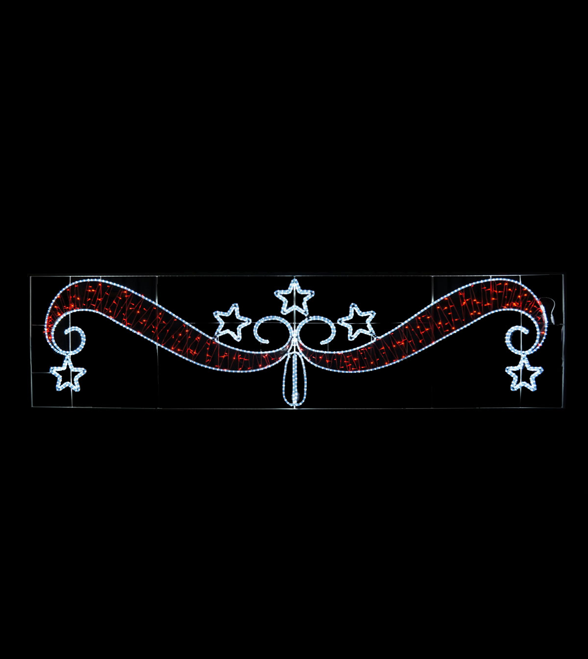 Инновационное уличное освещение: Светодиодная перетяжка "Звезды на красной ленте" 400х100 см создает яркое праздничное настроение. Идеальное решение для новогоднего украшения улиц Москвы и других городов. Современные светодиодные технологии обеспечивают равномерное свечение и длительный срок службы даже в сложных погодных условиях.