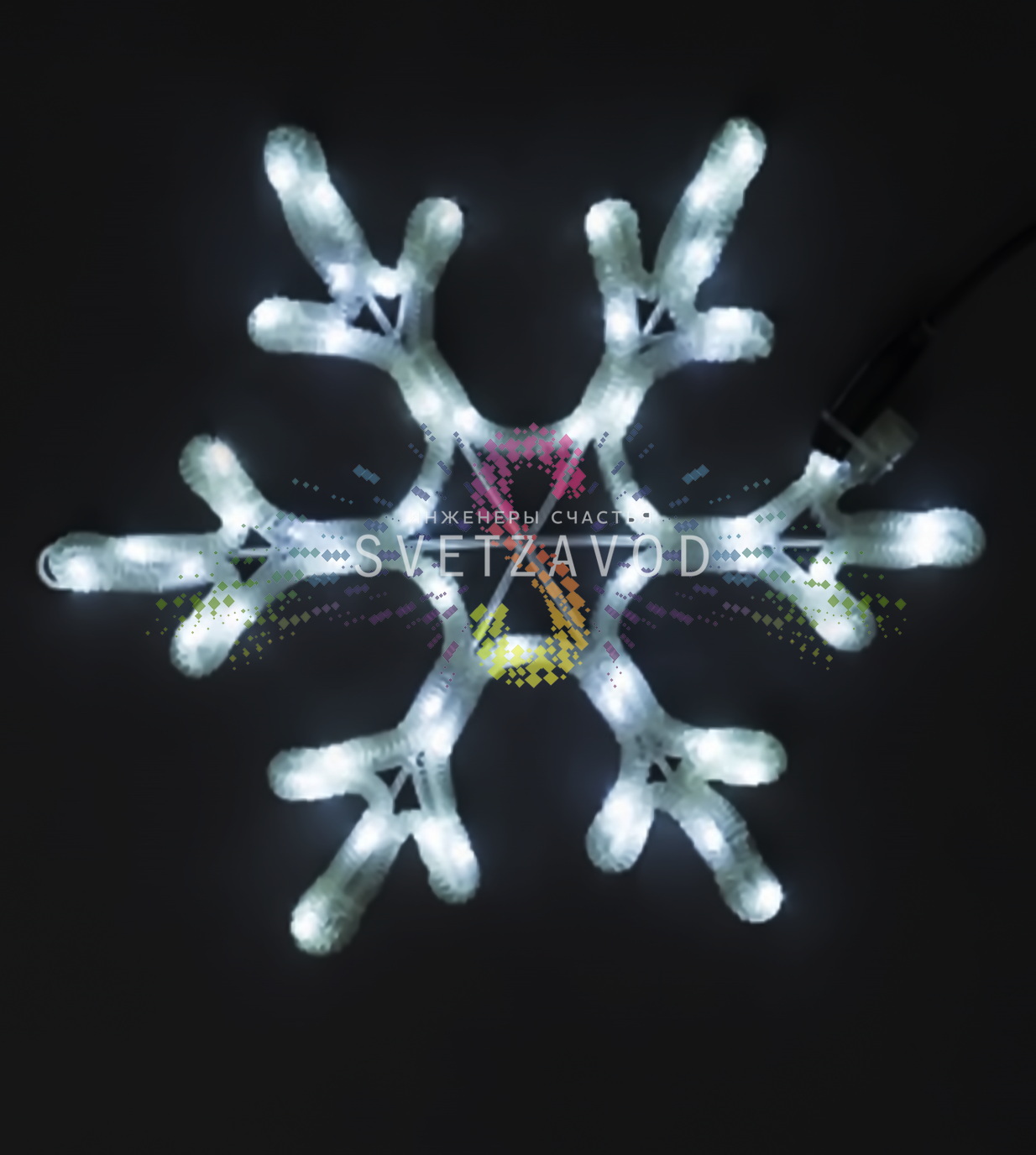 Современное новогоднее украшение: Светодиодная снежинка 40см - стильное украшение для создания праздничной атмосферы. Идеально подходит для декорирования фасадов, витрин магазинов, офисных помещений и домашнего интерьера в преддверии новогодних праздников.