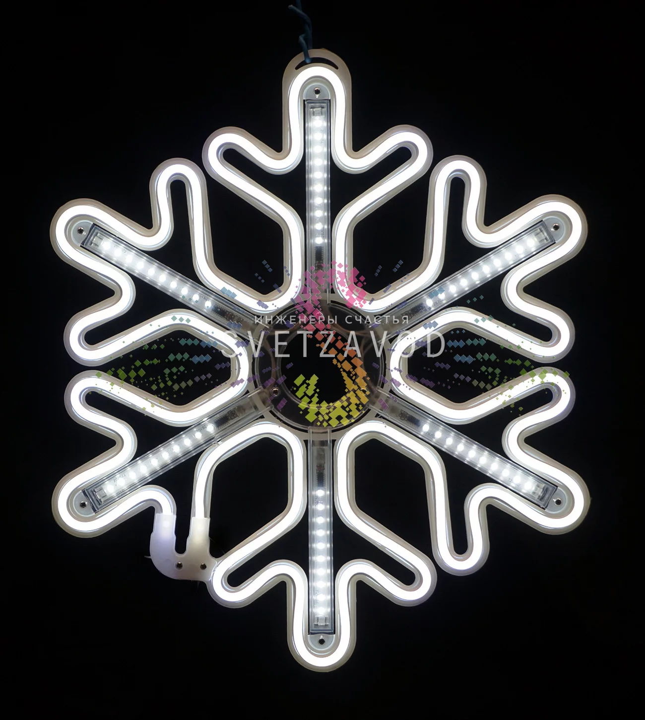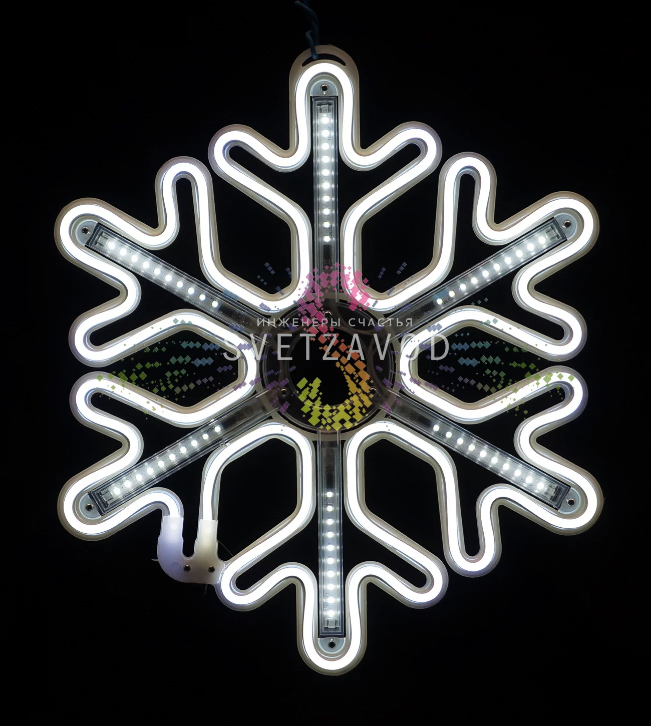 Решение: Светодиодная снежинка с эффектом тающих сосулек. Это не просто подсветка, а динамичное световое шоу, которое превратит ваш дом, витрину или фасад в волшебную сказку. Белый неоновый свет плавно стекает по лучам снежинки, создавая живой, завораживающий рисунок. Это идеальный выбор, чтобы купить светодиодные снежинки для создания уникальной атмосферы.