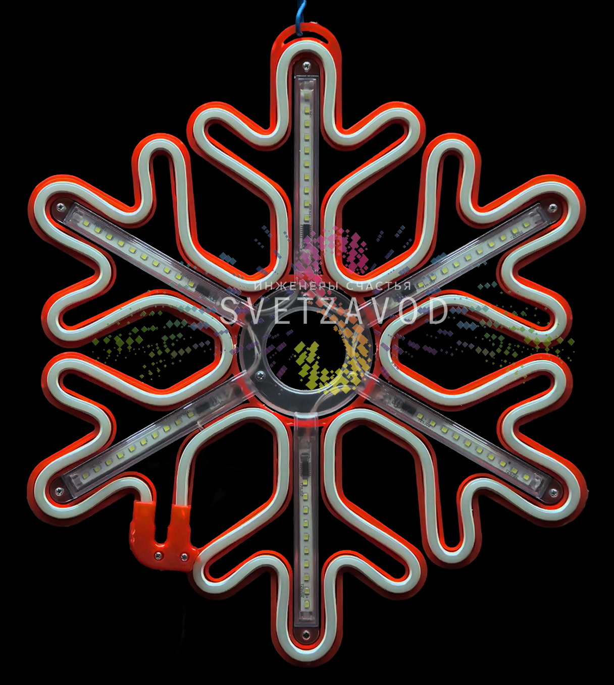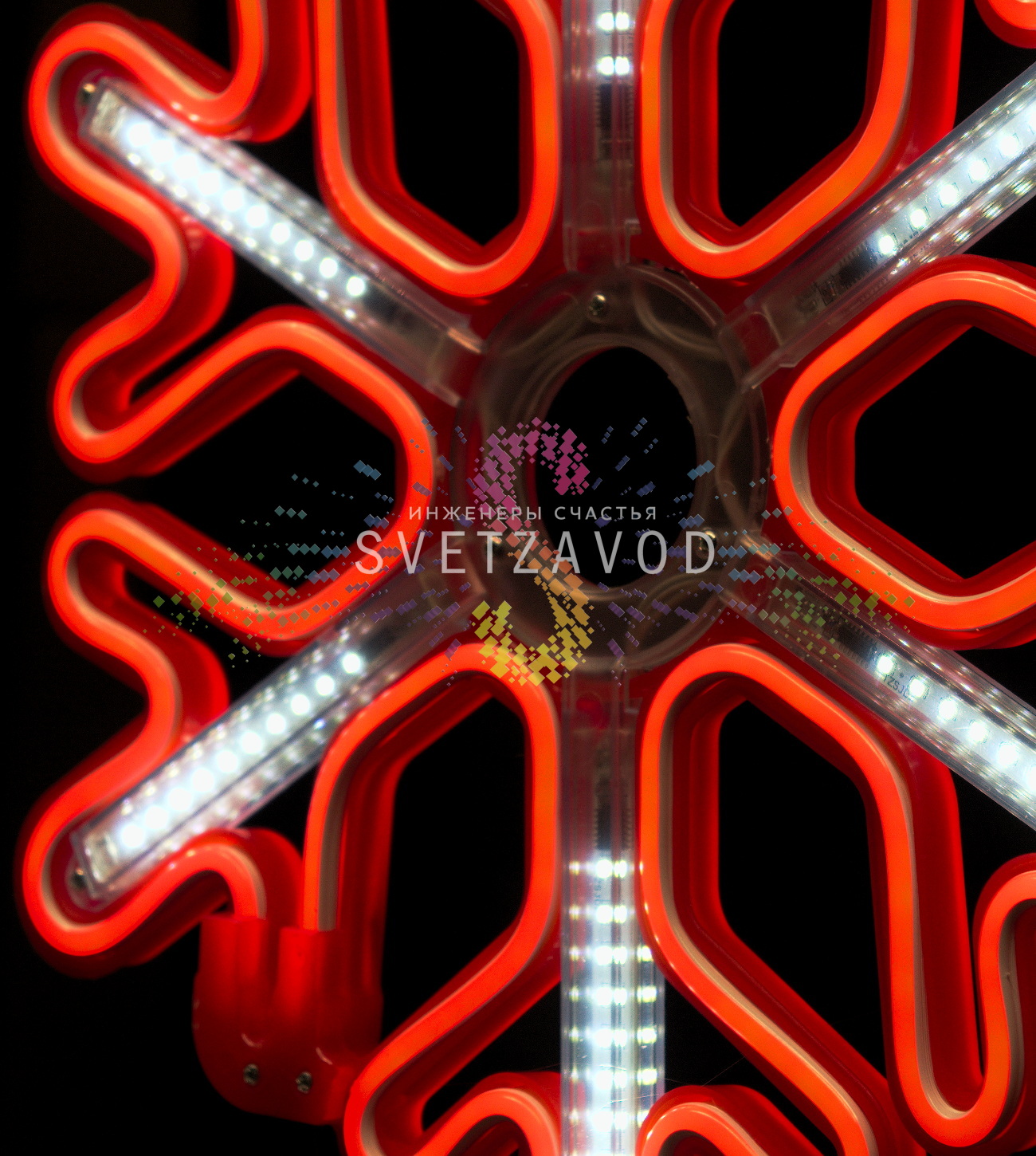 Идеальное решение для создания праздничной атмосферы как в помещении, так и на улице. Снежинка диаметром 40 см выполнена в насыщенном красном цвете и оснащена яркими светодиодами неонового свечения.