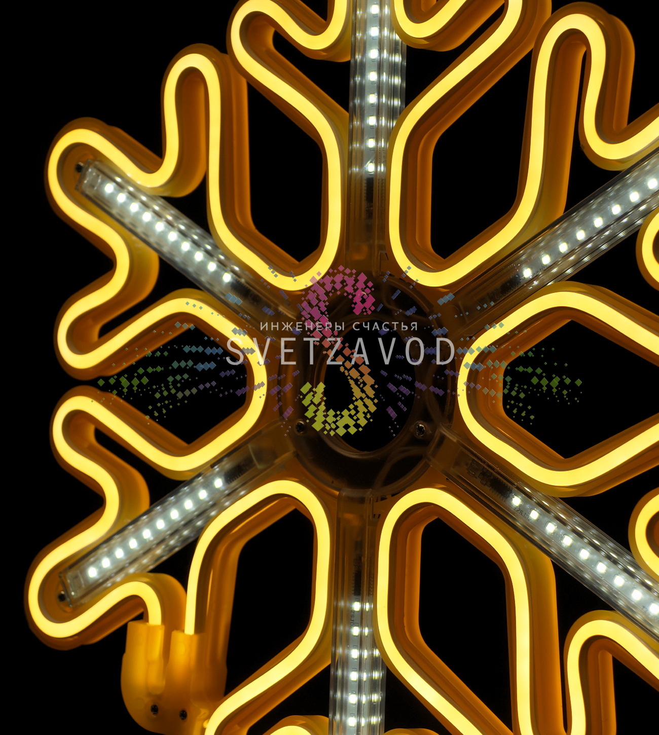 Идеальное решение для создания праздничной атмосферы как в помещении, так и на улице. Снежинка диаметром 40 см выполнена в теплом белом свечении, которое мягко рассеивается благодаря технологии гибкого неона.