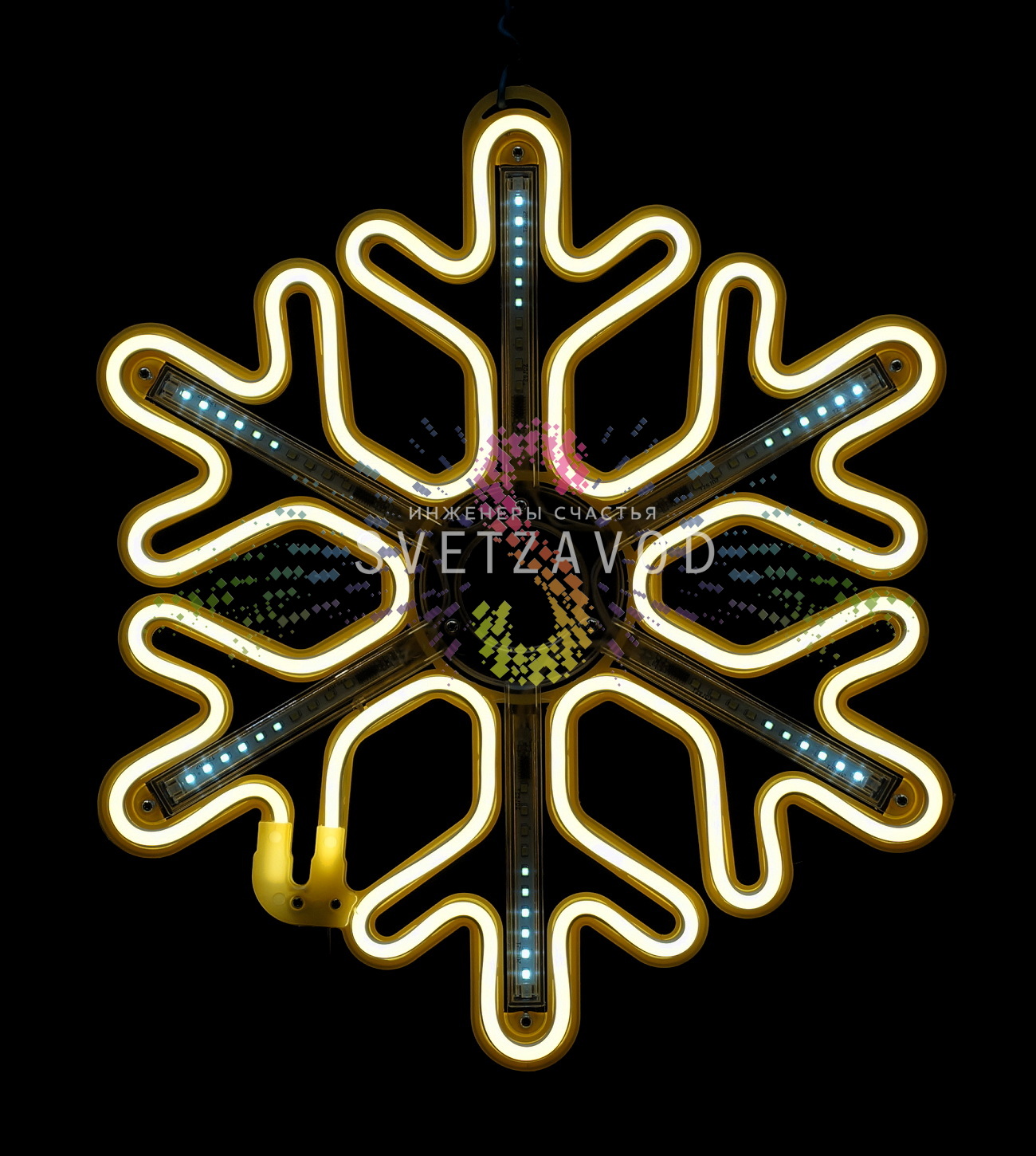 Надежность и безопасность: Конструкция снежинки предусматривает специальное монтажное "ушко" для простой и надежной установки. Питание осуществляется непосредственно от сети 220В, что исключает необходимость в дополнительных трансформаторах или блоках питания.