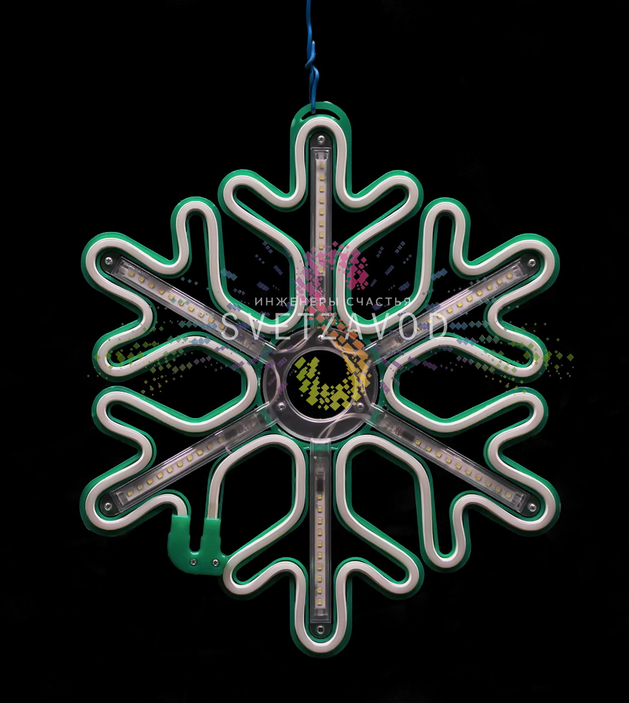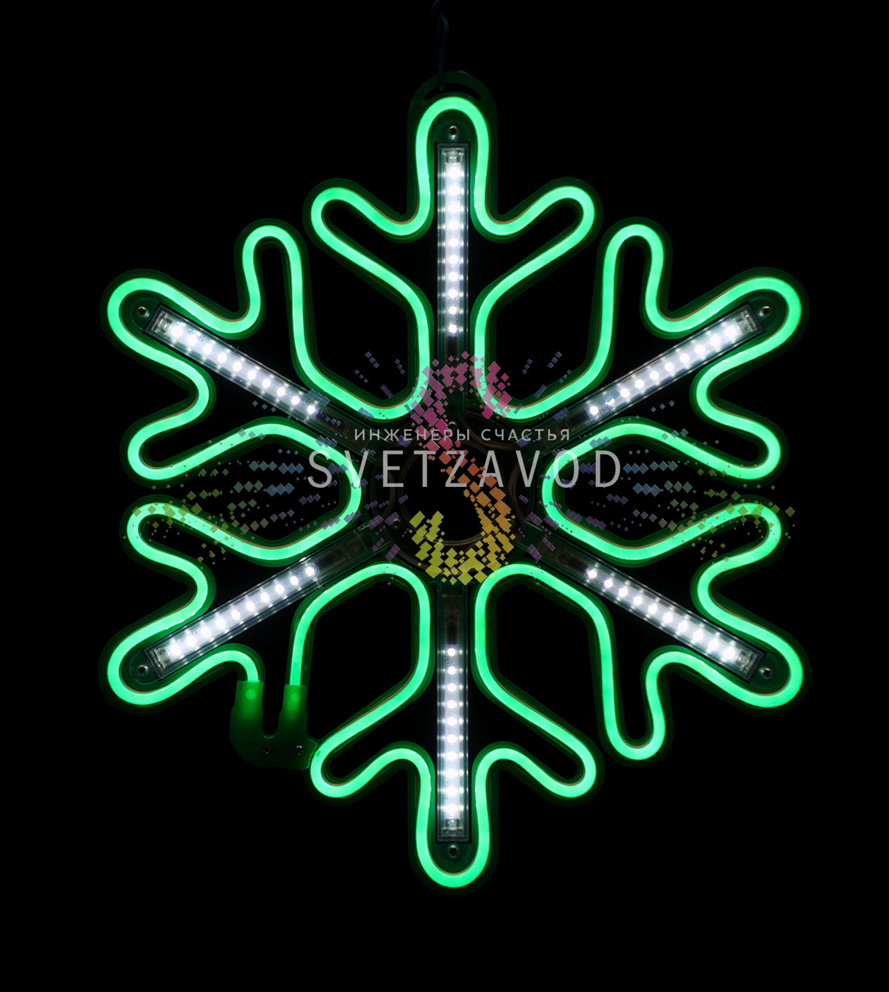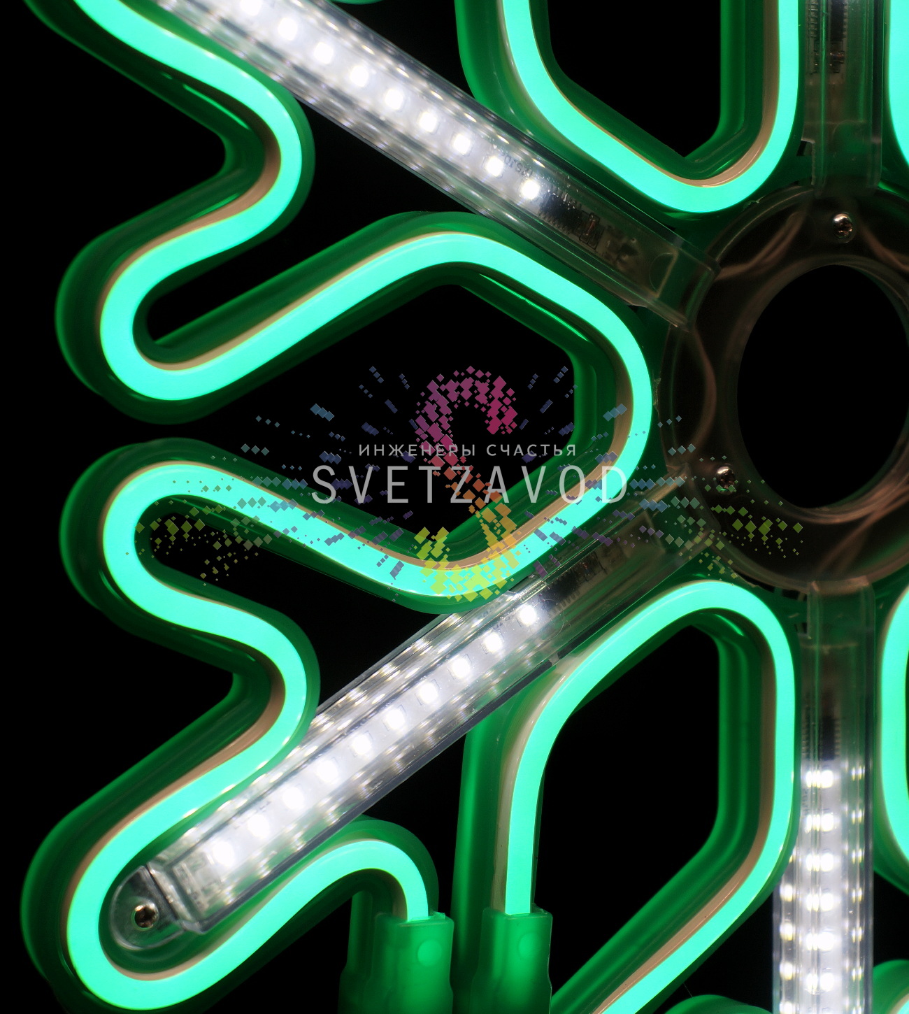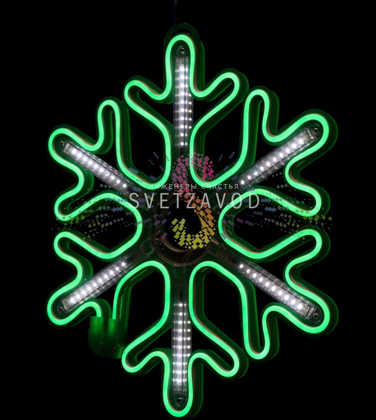 Инновационная светодиодная технология: Светодиодная снежинка 40см с зеленым неоновым свечением и эффектом тающих сосулек создает волшебную атмосферу праздника. Идеальное решение для новогоднего декора с современным динамическим освещением.