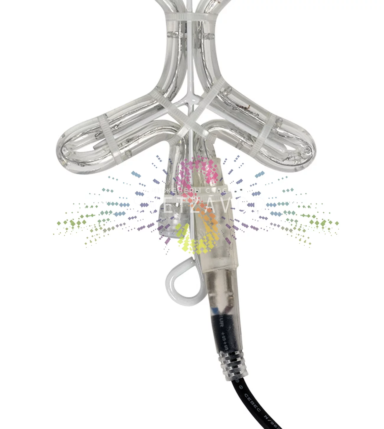 Прочный каркас: Основа снежинки — металлический каркас, который сохраняет форму даже при сильном ветре и механических нагрузках. Порошковая покраска защищает от коррозии, обеспечивая презентабельный вид на протяжении многих сезонов.