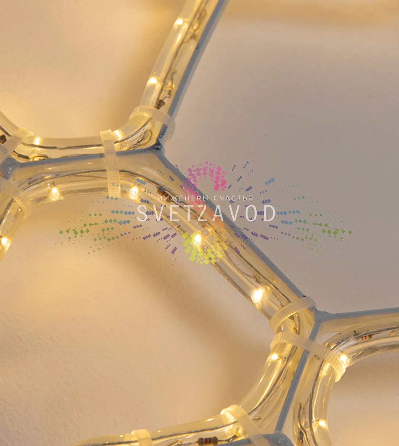 Надежный световой шнур: В основе подсветки — качественный дюралайт (светодиодный шнур) с защитой IP65. Это означает полную защиту от пыли и струй воды, что позволяет использовать украшение под дождем и снегом.