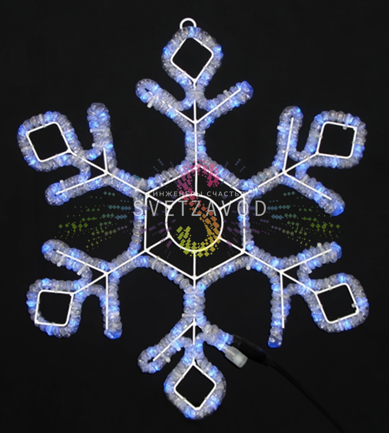 Практичность и удобство: Каждая снежинка оснащена специальным крепежным "ушком" для простого монтажа на различные поверхности. Комплектуется готовым шнуром питания с вилкой для подключения к сети 220В. Светящиеся снежинки по доступной цене - это выгодное предложение для новогоднего оформления коммерческих объектов и частных территорий.